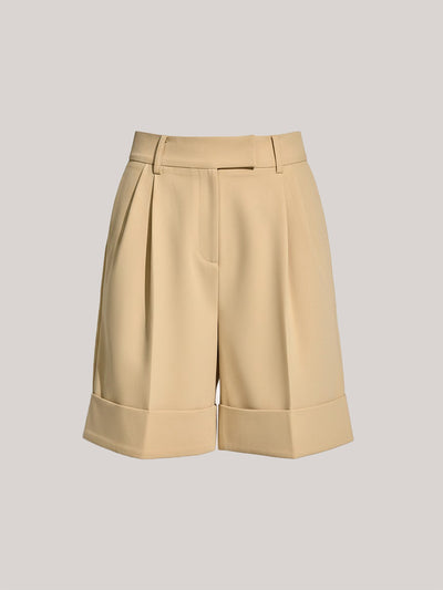 Pocket Mid-Waist Pleated Cuffed Shorts
