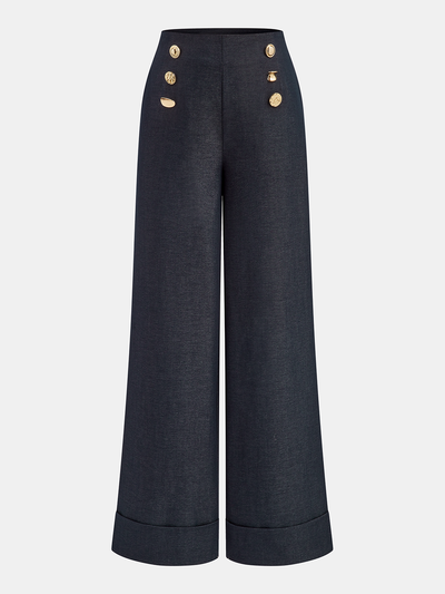 Corduroy Pleated Mid-Waist Wide-Leg Pants