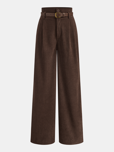 Belted Corduroy Wide-Leg Pants