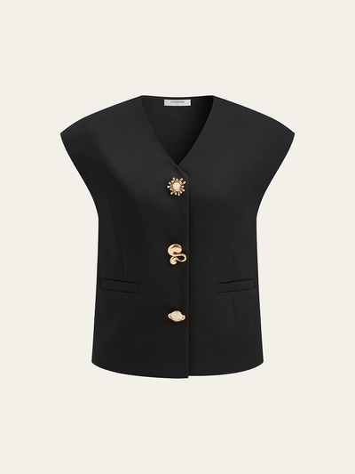 Metal Detail Cap Sleeve Ribbed Knit Vest