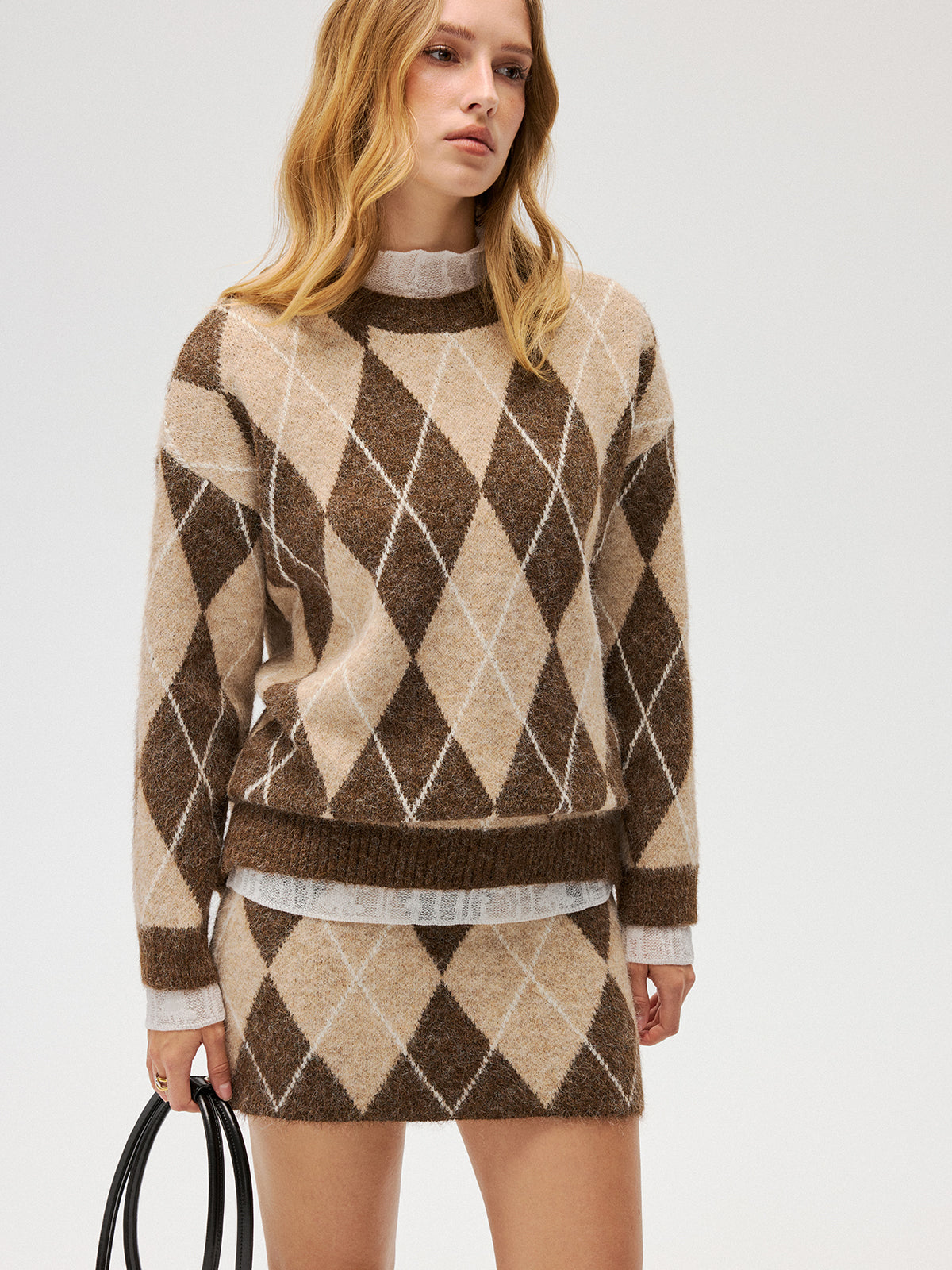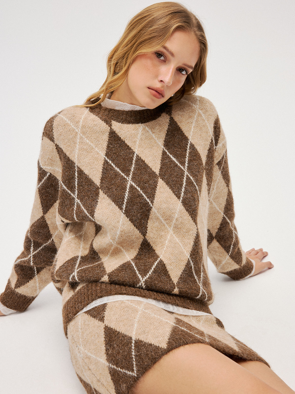 a-none,brown,casual,cici select,clothing,coll:knitwear,coll:matching_sets,coll:plaids_polka,coll:skirts,coll:trending,corpcore,fall,in_six_month,knit,minegence,not_low_sales,oa251029023,photo_model,plaid,regular,regular fit,sets,skirt sets,slight stretch,spring,warm,winter,winter hues,women