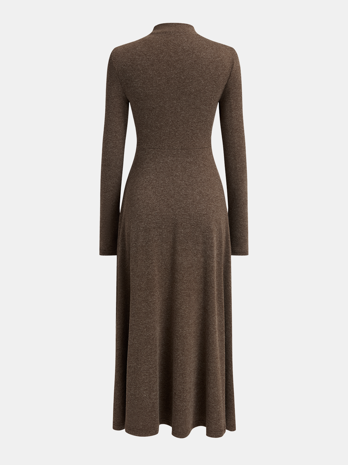 a-none,casual,clothing,coll:dresses,corpcore,dark brown,dresses,fall,in_six_month,jersey,long sleeve,medium stretch,midi,minegence,no,not_low_sales,oa251020113,regular,regular fit,spring,stand collar,winter,women