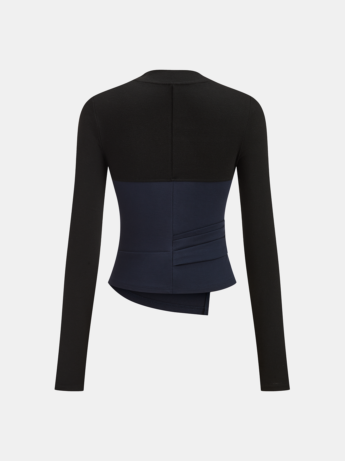 blouses,blue,casual,clothing,coll:blouses_shirts,coll:tops,color block,corpcore,fall,in_six_month,jersey,long sleeve,medium stretch,minegence,mock neck,no,not_low_sales,oa251030093,regular,regular fit,spring,tops,winter,women
