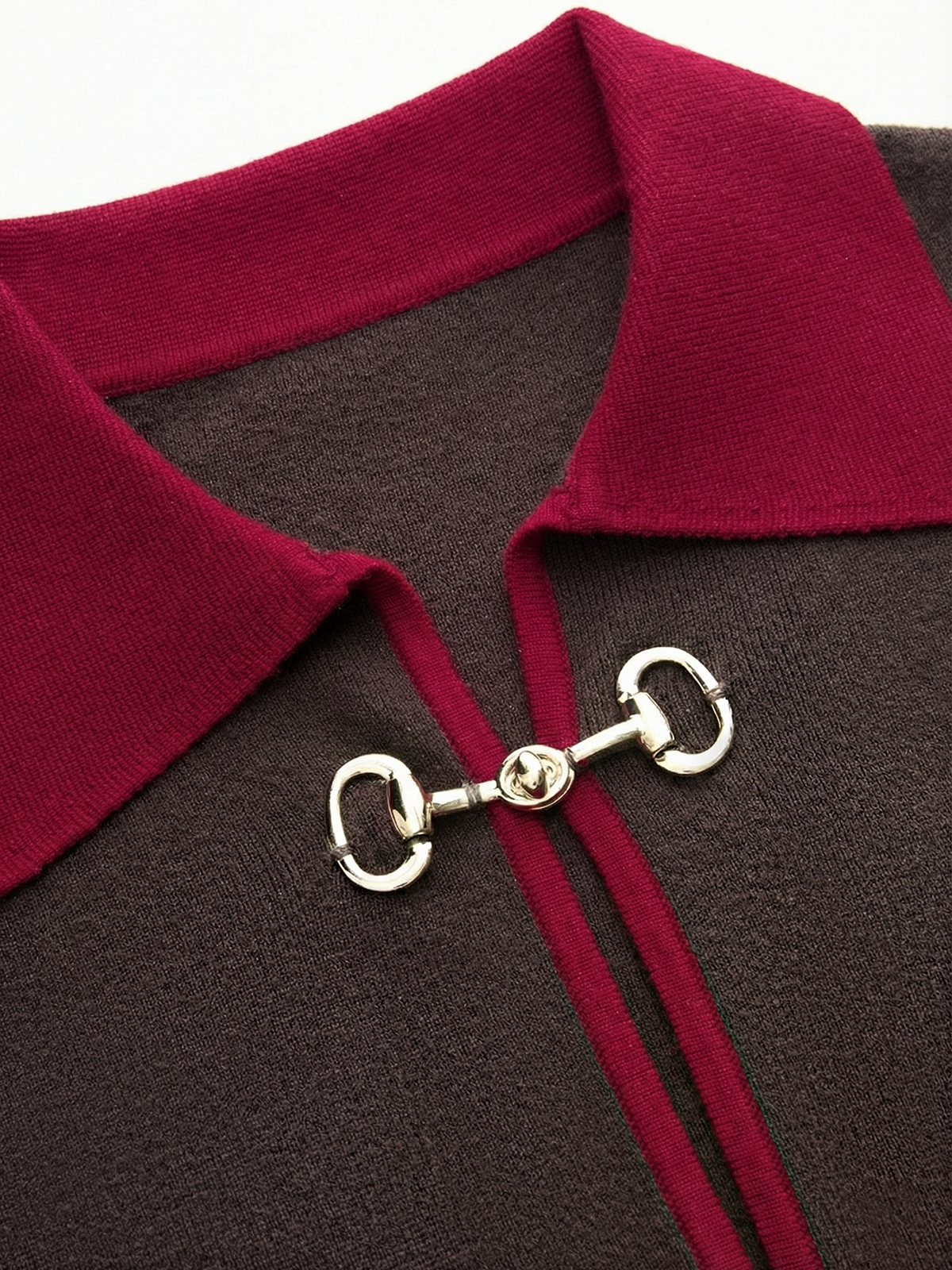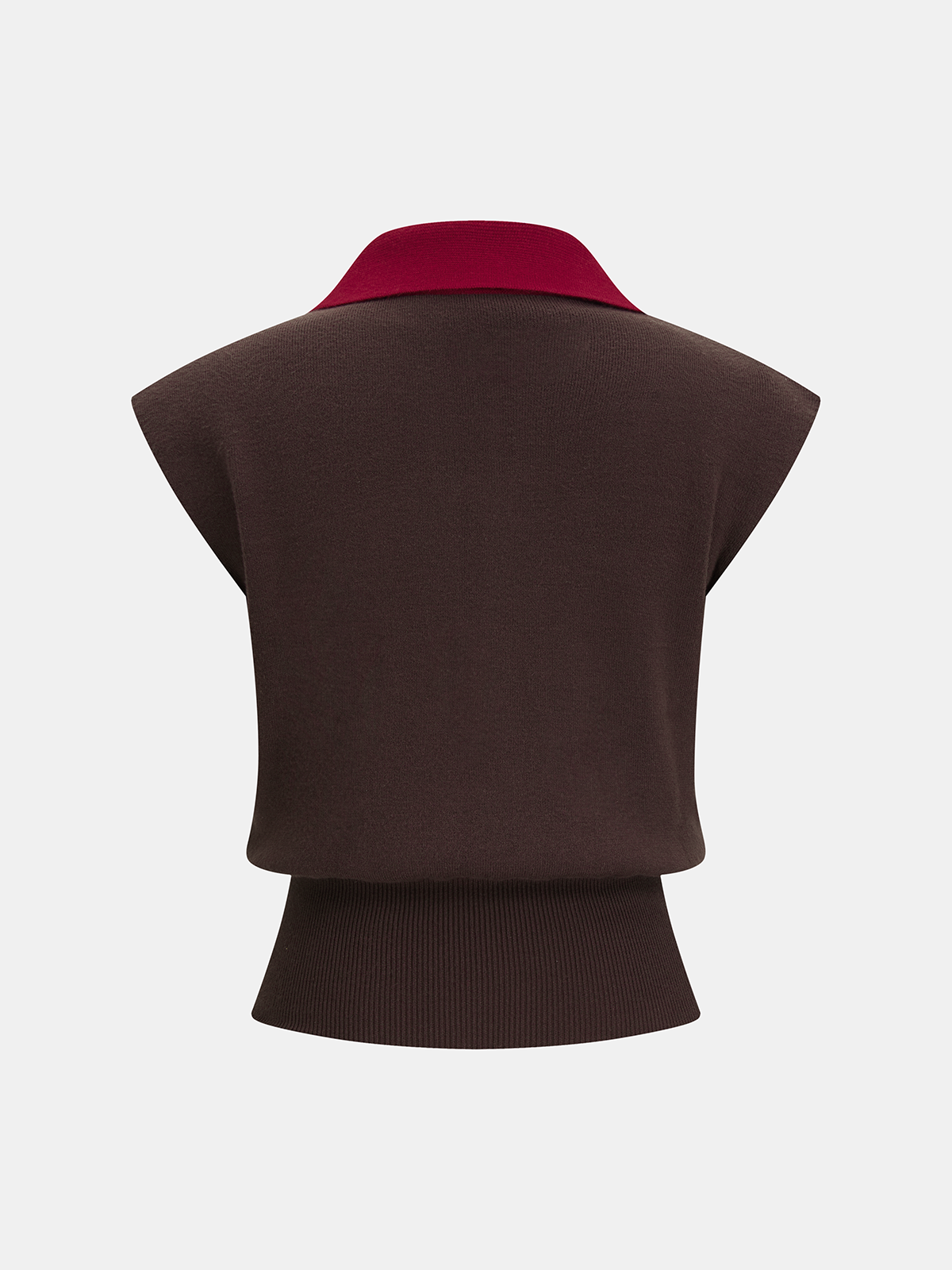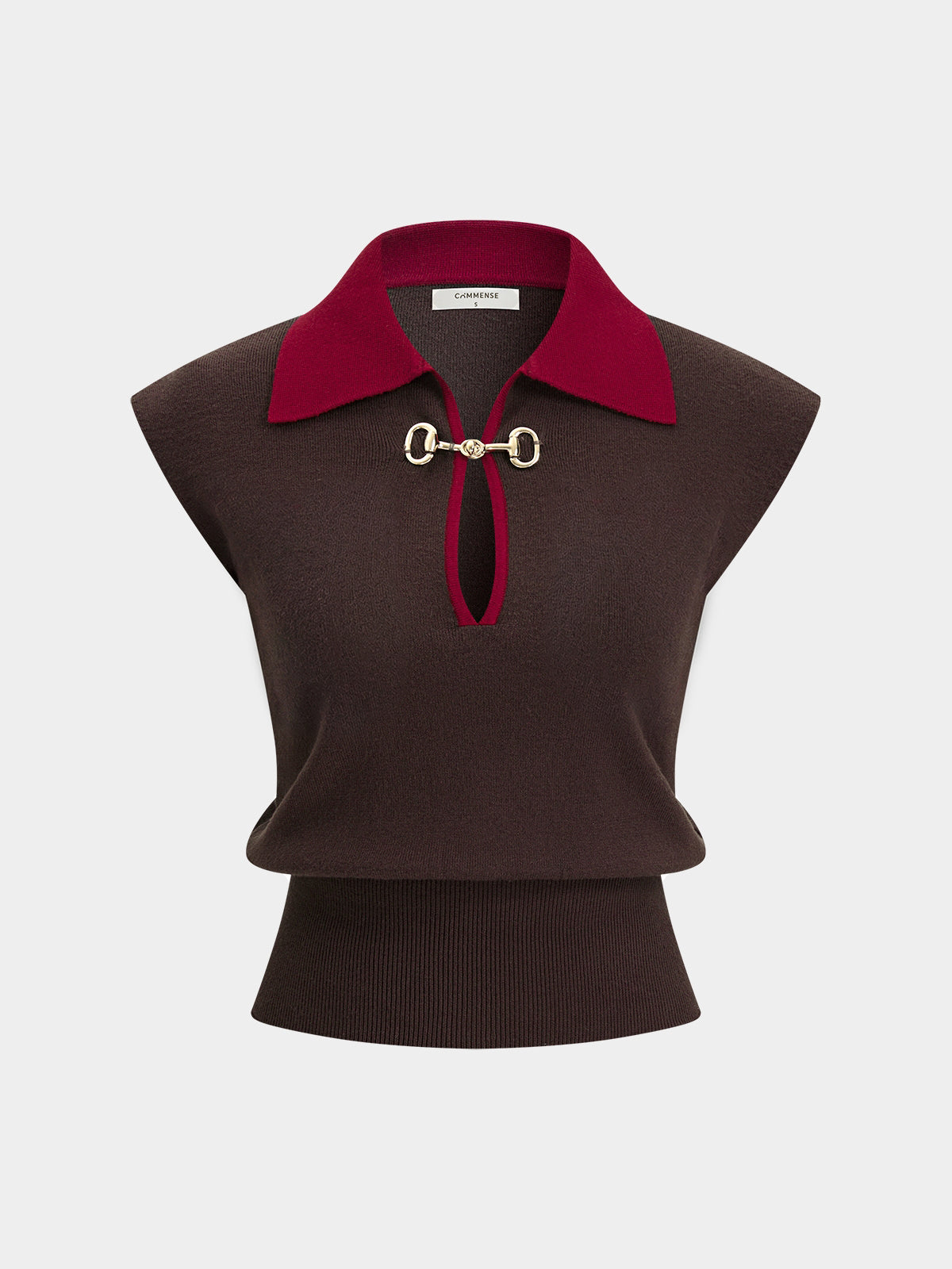 bloused waist,casual,clothing,coll:knitwear,coll:sweater_tops,coll:sweaters_cardigans,coll:tops,coll:trending,color block,corpcore,dark brown,in_six_month,knit,knit tops,medium stretch,metal detail,minegence,not_low_sales,oa251121030,regular,regular fit,sleeveless,sweaters & cardigans,women