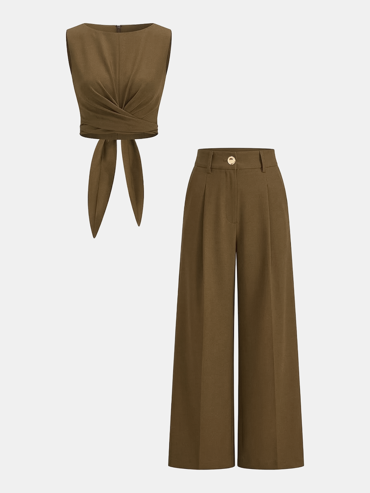 Cross-Tie Crop Top & Wide-Leg Pants Set
