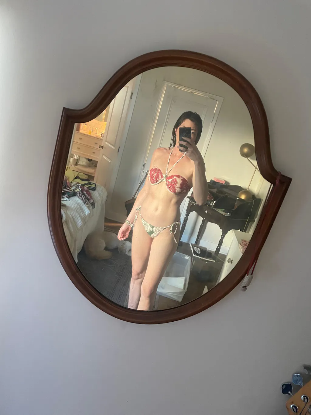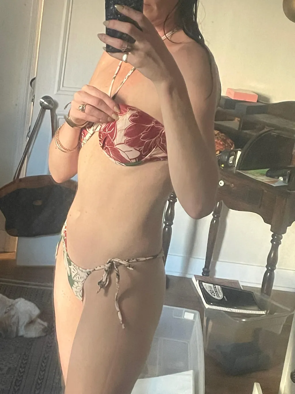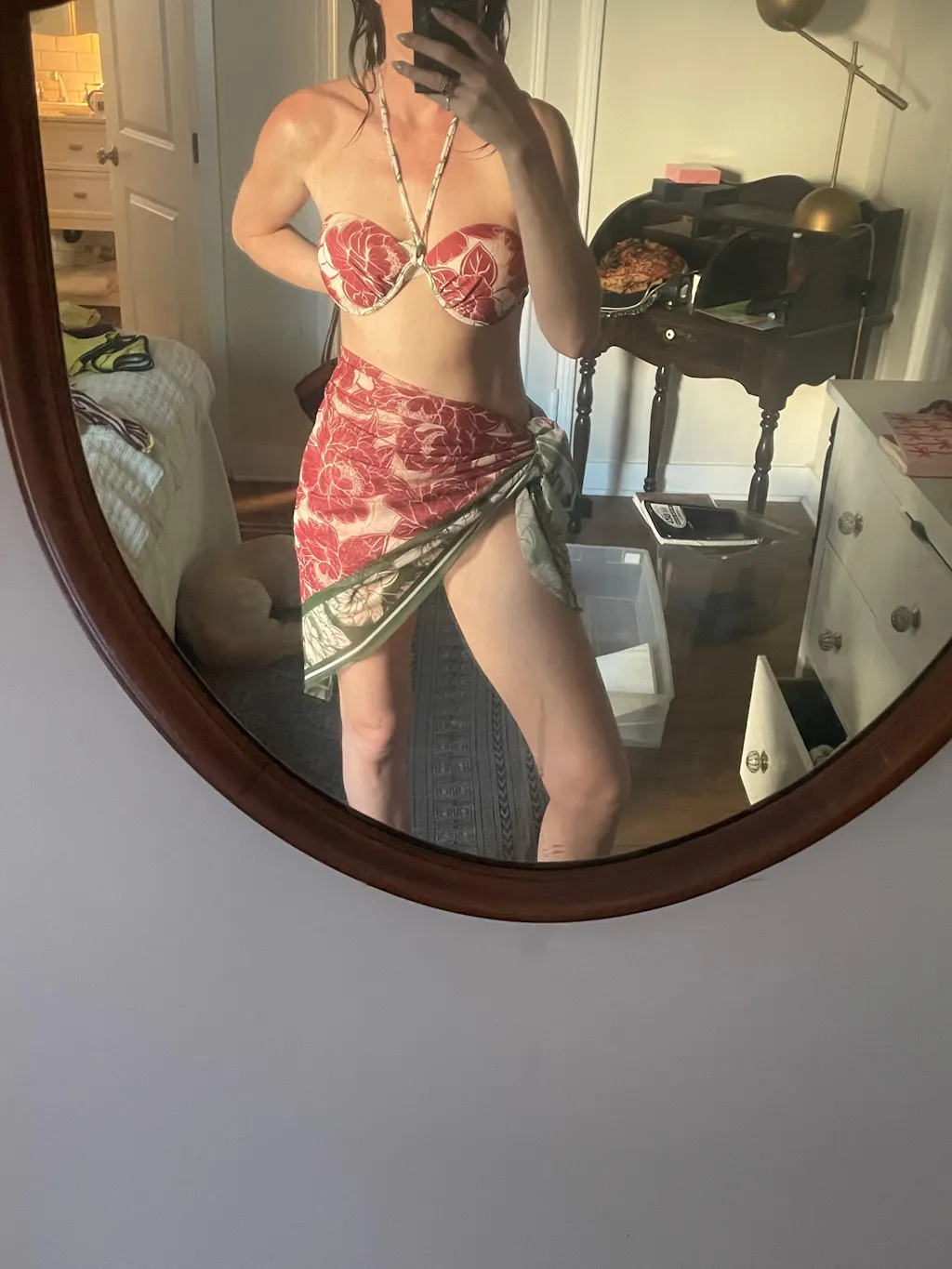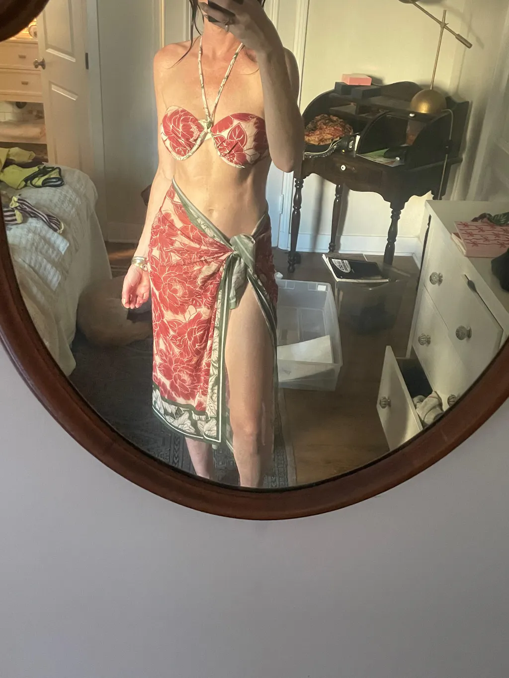 so excited to get this beauty! Top is sturdy, stays in place and is comfy, Bottoms….reversible!! What! Tie skirt is perfect. The quality is there 💯.