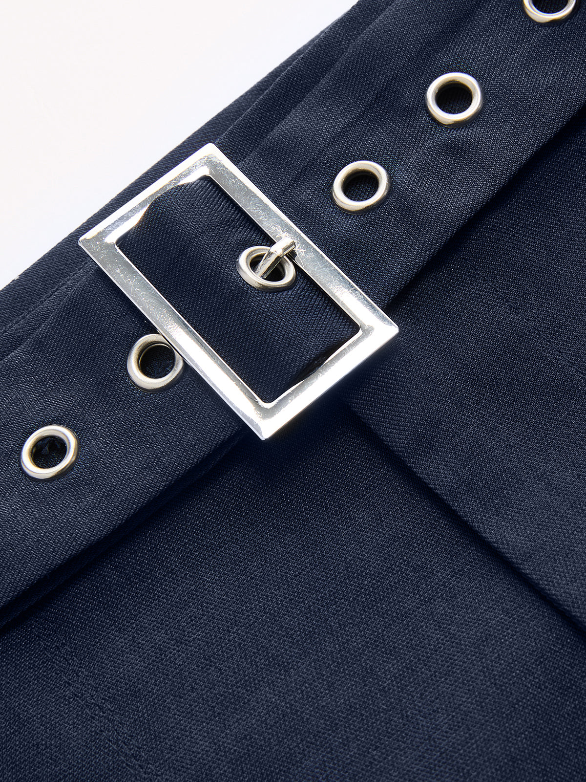 asymmetric,belted,casual,clothing,coll:bottoms,coll:matching_sets,corpcore,feminine,in_six_month,navy,non-stretch,not_low_sales,oa251222034,pant sets,pleated,regular fit,ruched,sets,thin,women,woven fabric