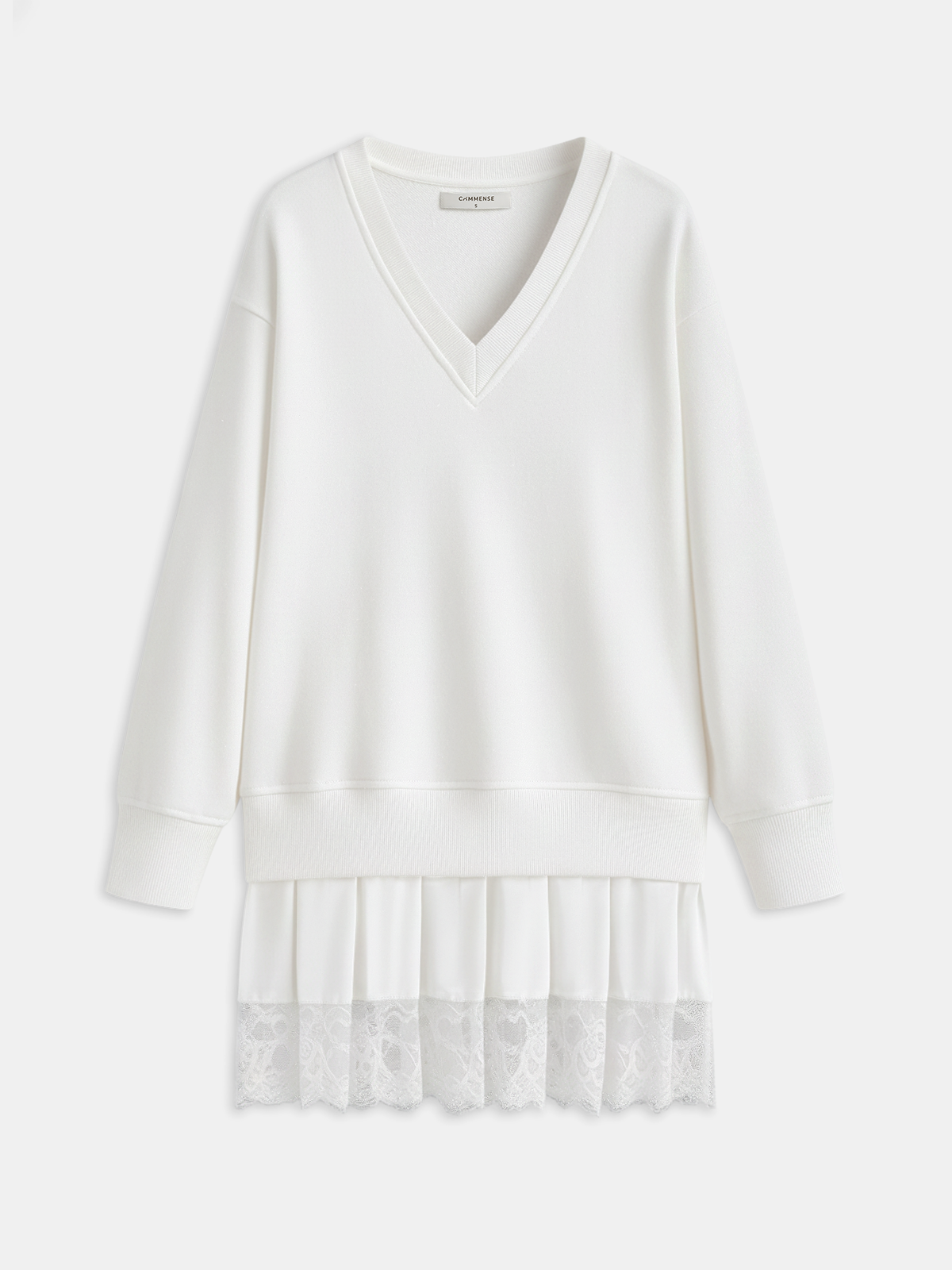 a-none,black,cici select,clothing,coll:dresses,crew neck,dresses,fall,in_six_month,lace,long sleeve,minegence,no,non-stretch,not_low_sales,oa251024073,oversized,patchwork,regular,short,spring,sweatshirt fabric,white,winter,women