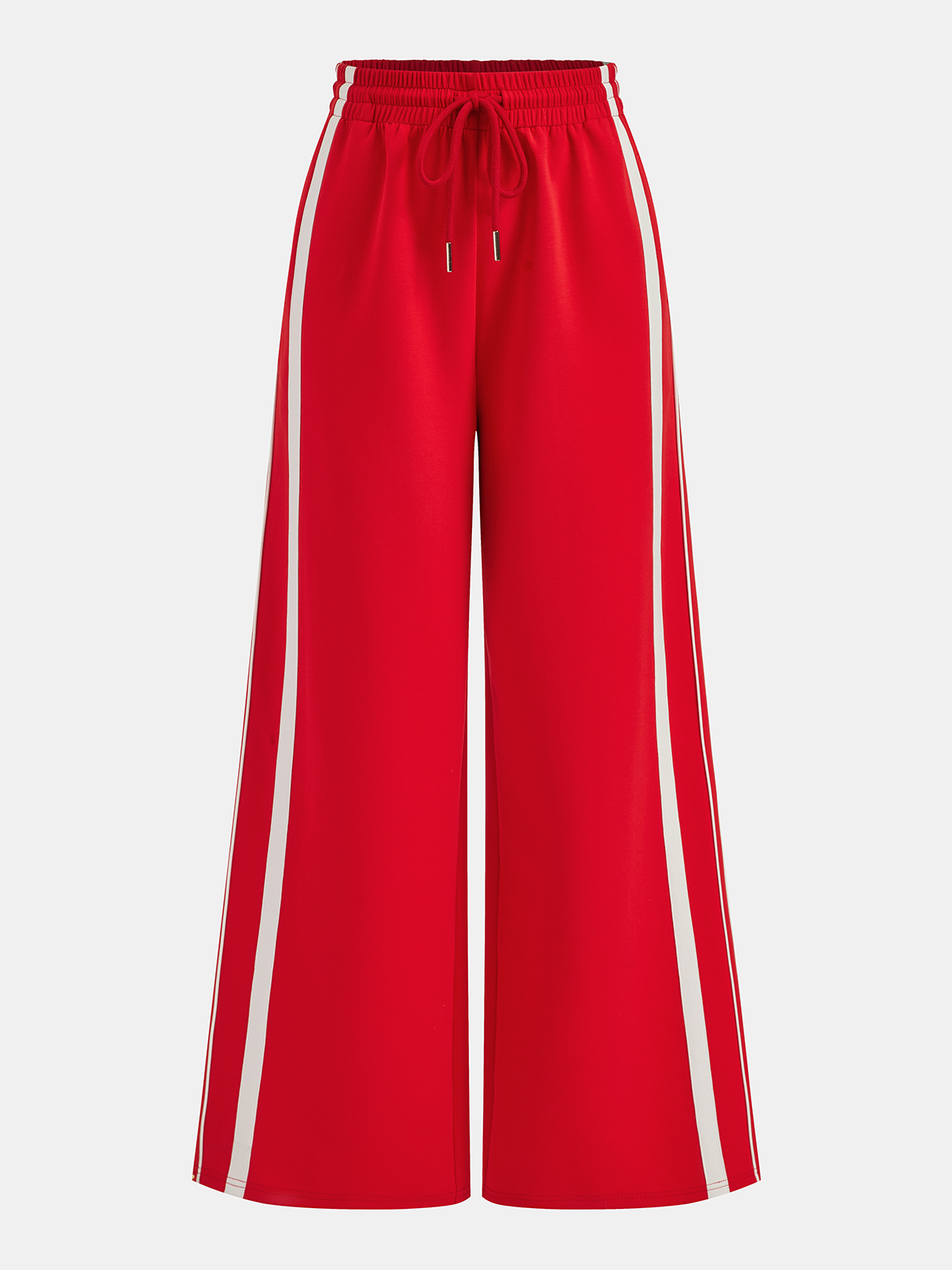 casual,clothing,coll:bottoms,coll:matching_sets,contrast piping / trim,elastic waistband,in_six_month,minegence,mwt,not_low_sales,oa251107029,pant sets,red,regular,ruched,sets,shift,slight stretch,sweatshirt fabric,women