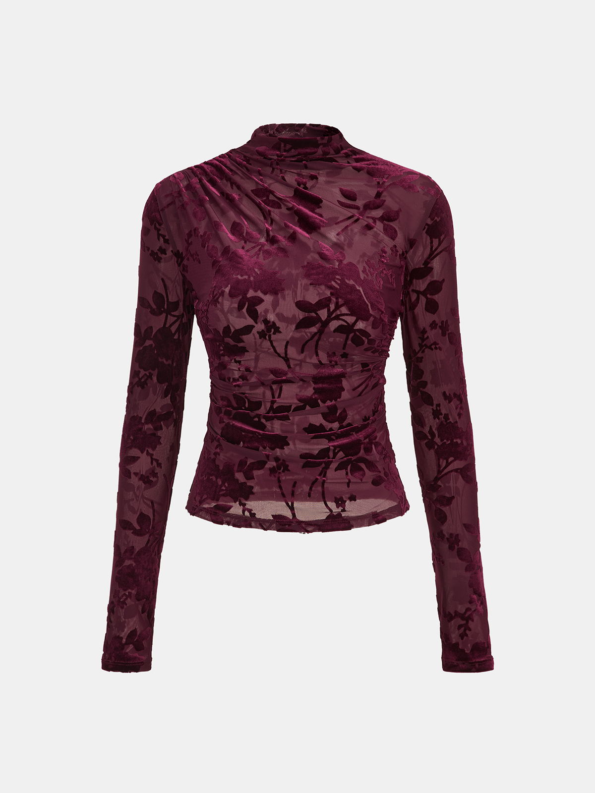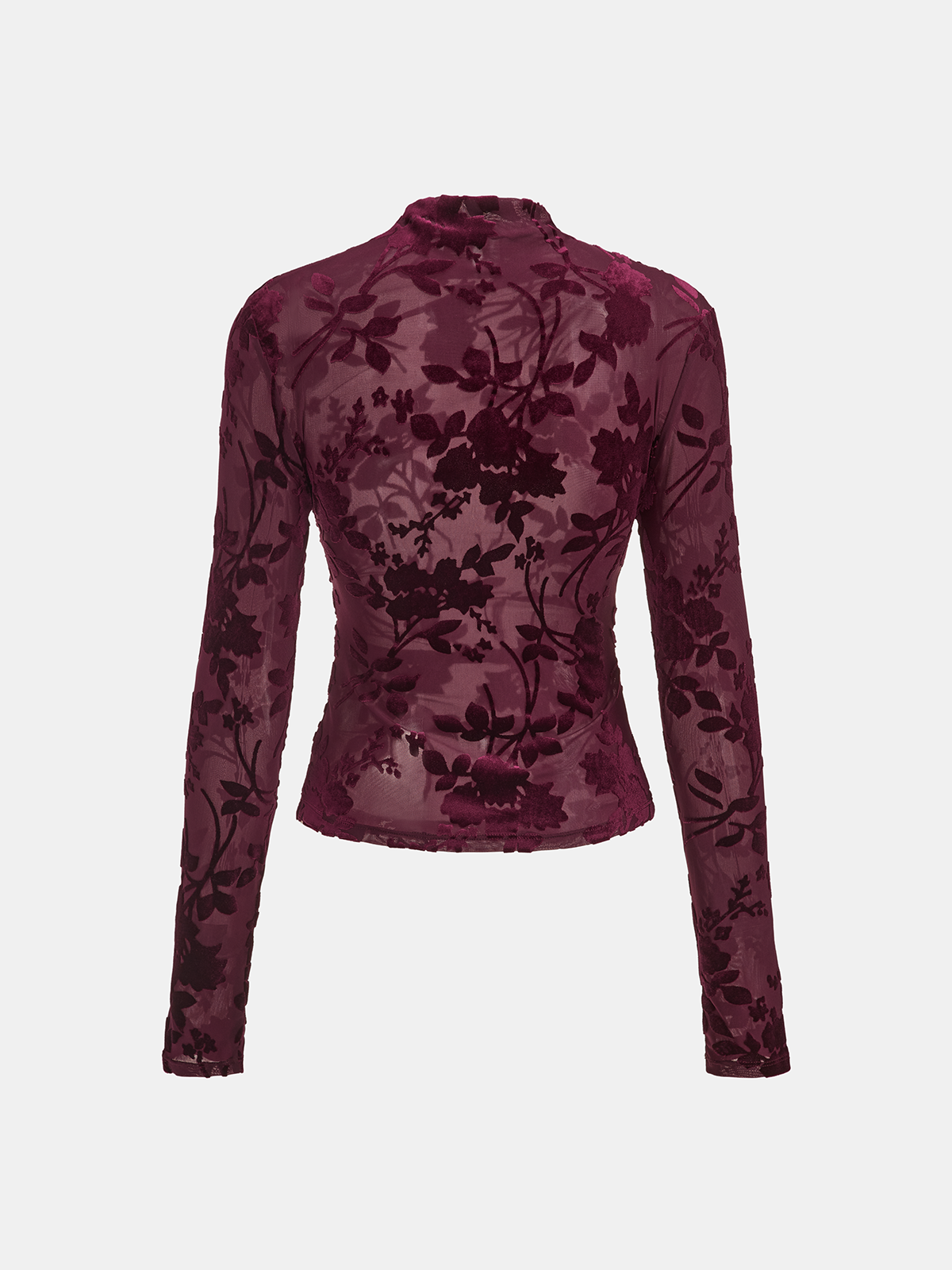 Velvet Floral Mesh Mock Neck Top