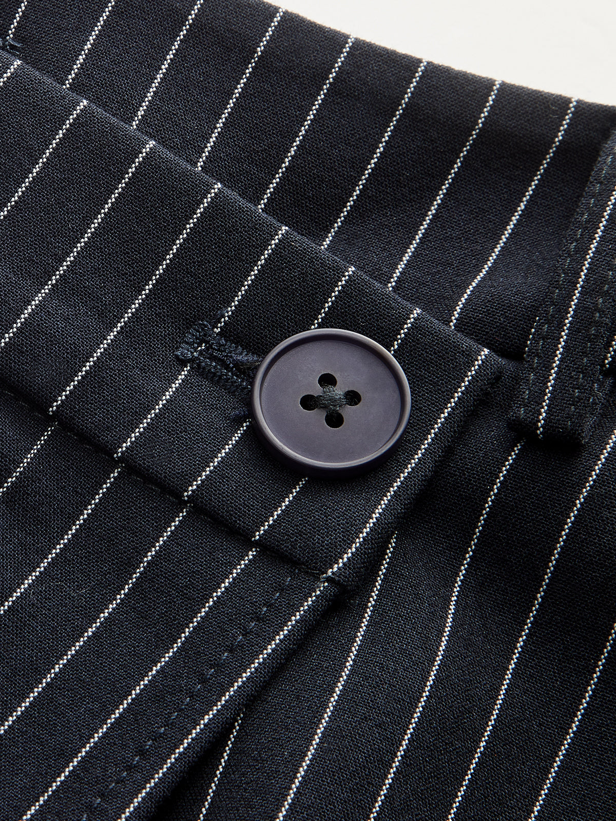 Wide-Leg Pinstriped Asymmetric Placket Pants
