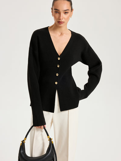 Wool-Blend V-Neck Button Cardigan