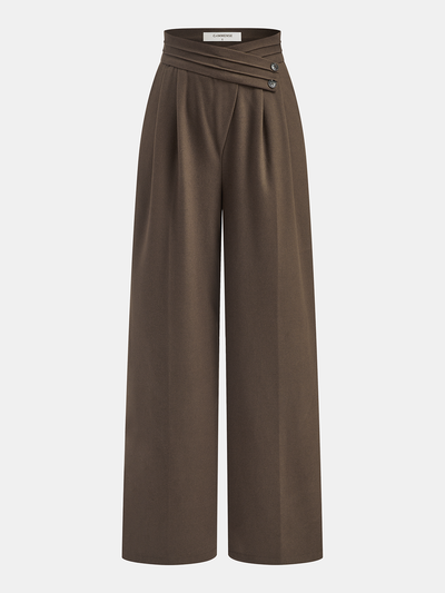 Asymmetrical Waistband Pleated Wide Leg Pants