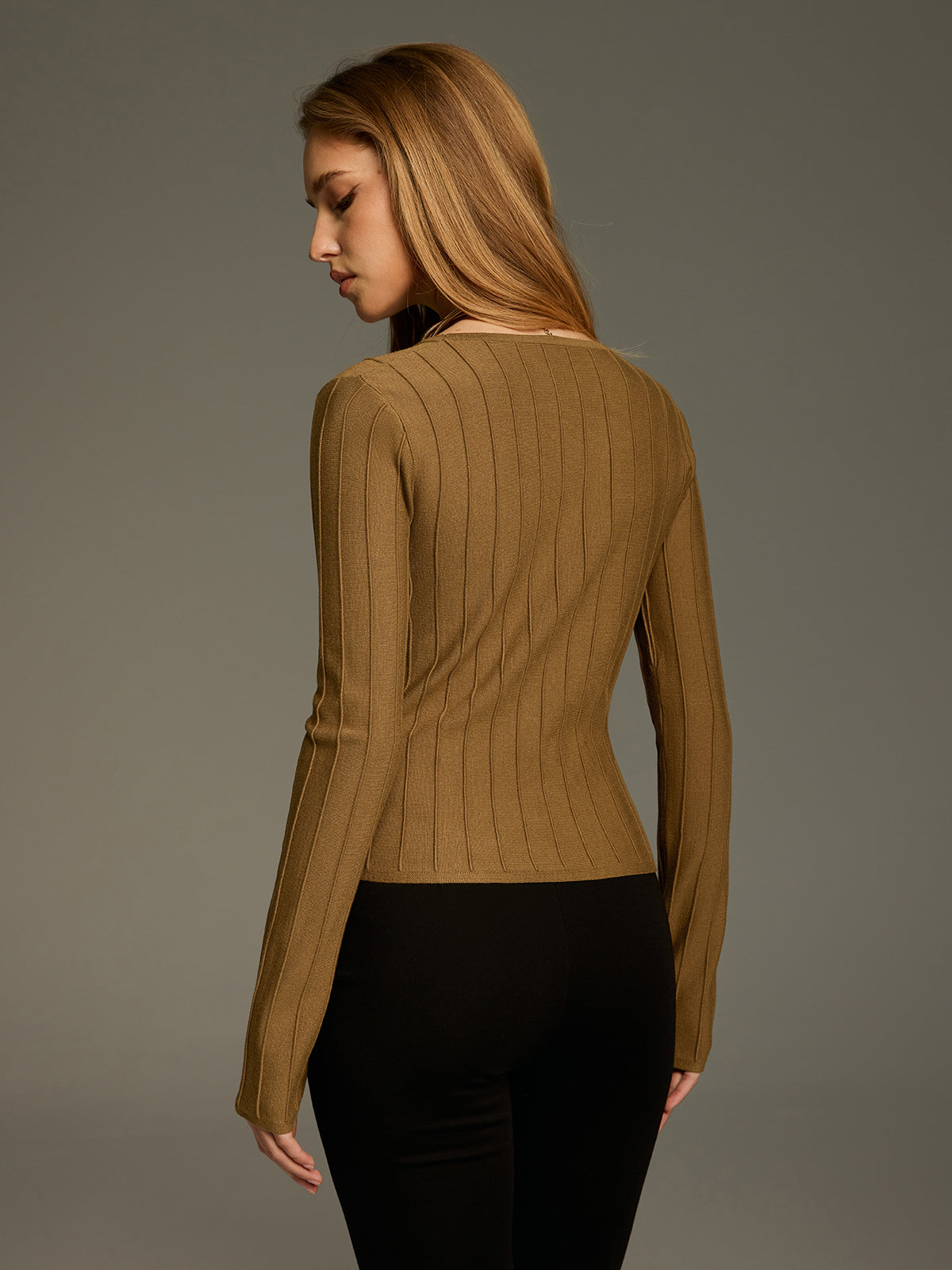 casual,clothing,coll:knitwear,coll:sweater_tops,coll:sweaters_cardigans,coll:tops,coll:trending,corpcore,feminine,high stretch,in_six_month,knit,light brown,metal detail,not_low_sales,oa251021005,photo_model,regular,regular fit,sweaters,sweaters & cardigans,winter hues,women