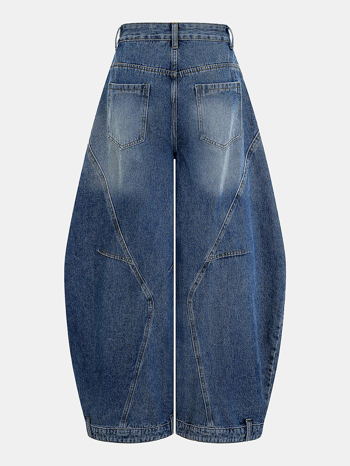 Asymmetric Waistband Mid-Waist Balloon Jeans