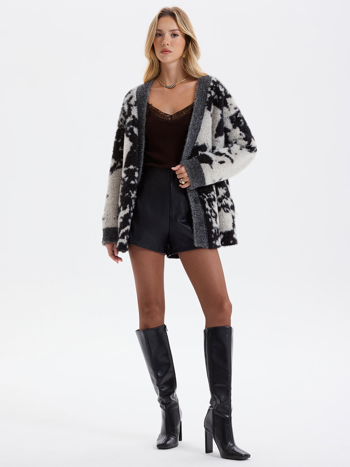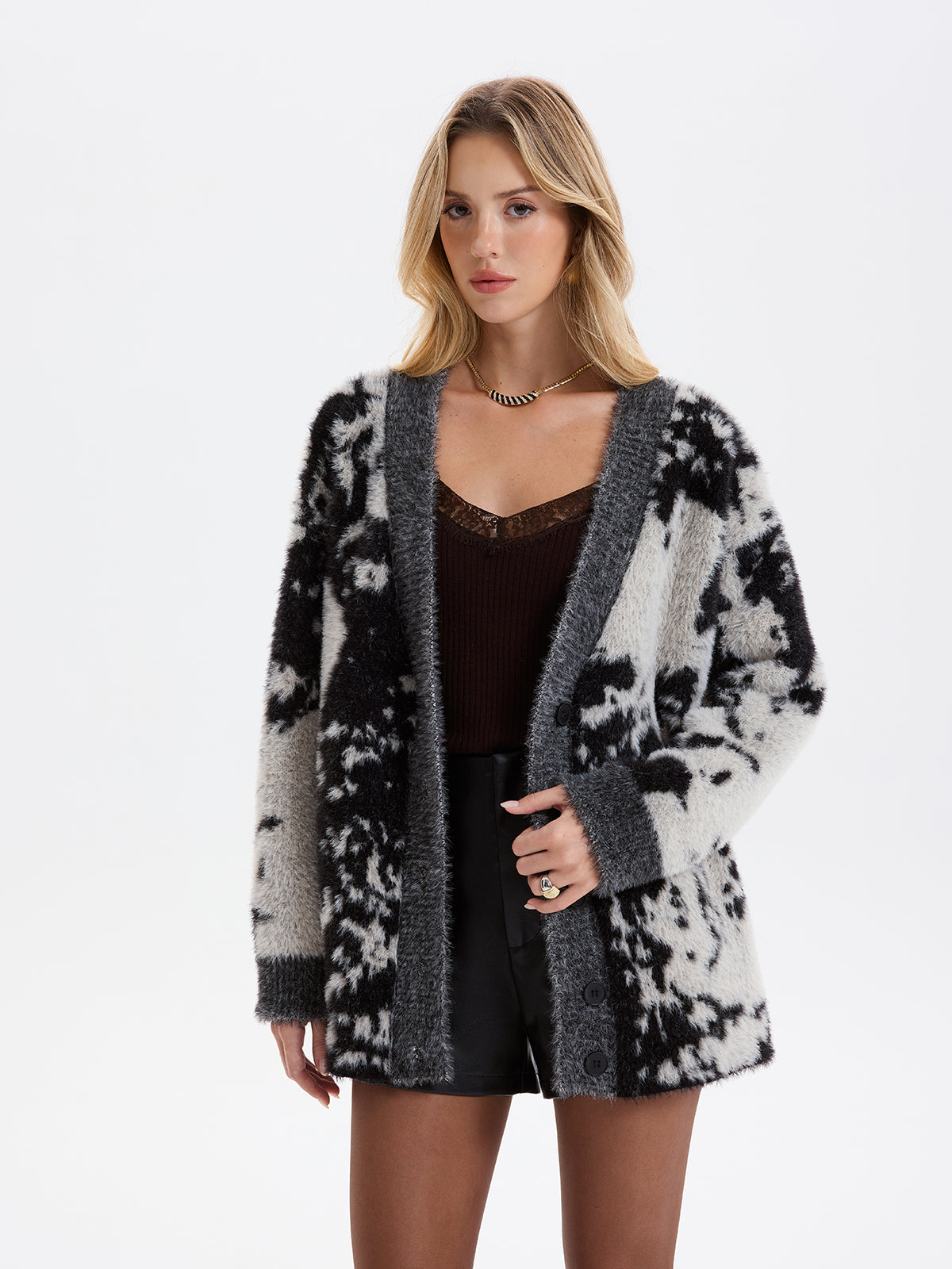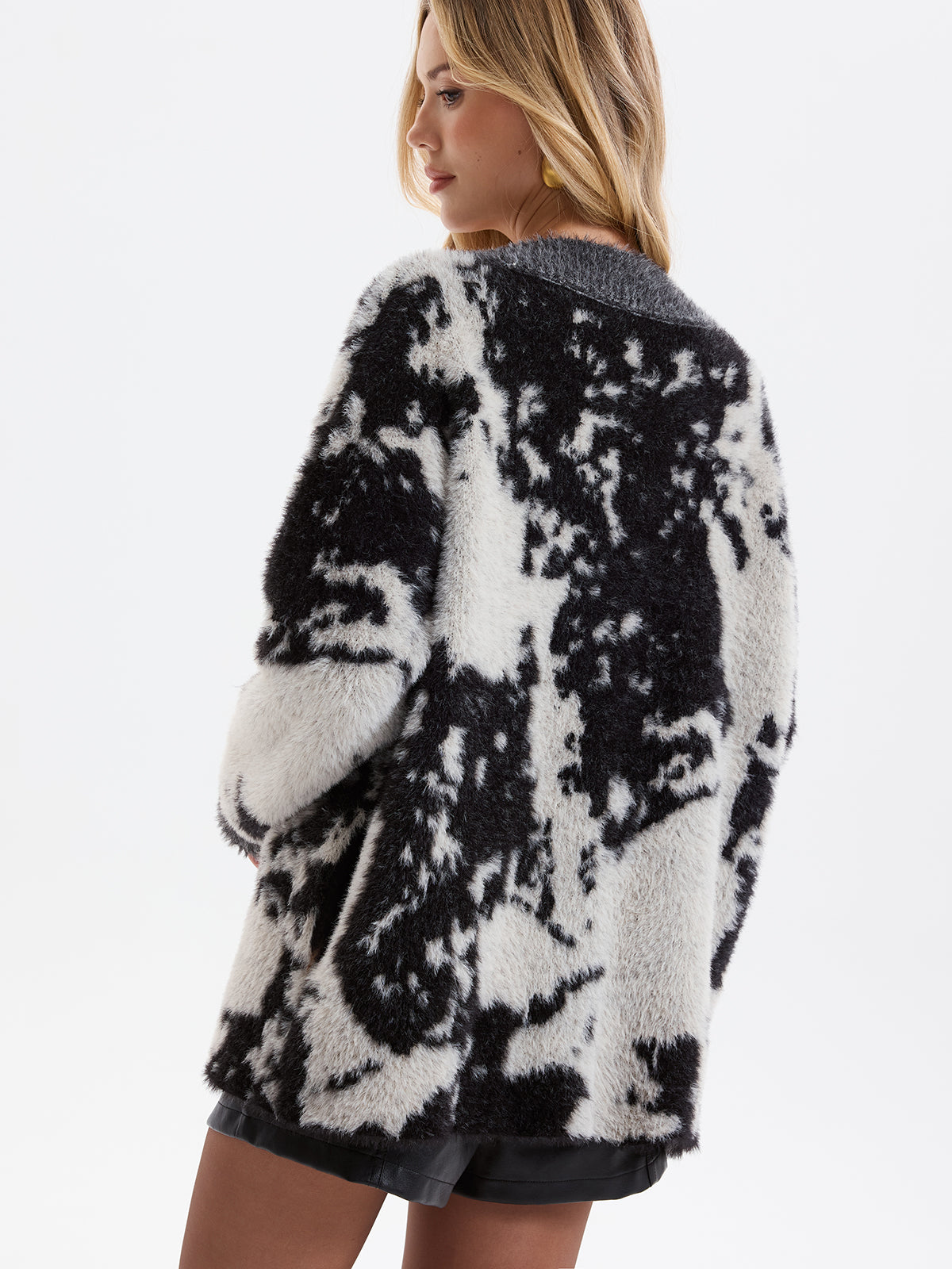 Cow Print Faux Mink Fur Cardigan