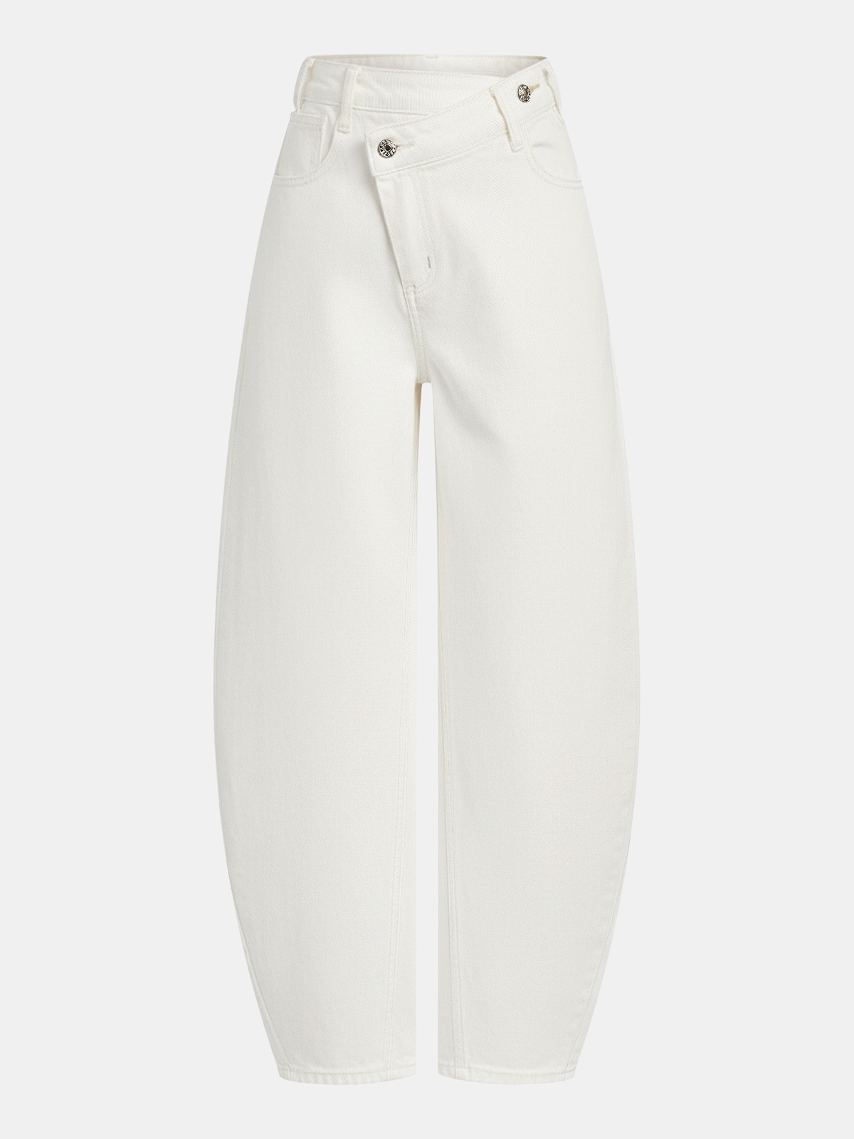 High-Waist Denim Asymmetric Curved-Leg Jeans