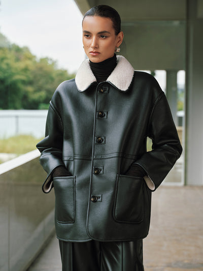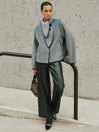 Faux Leather Lace-Trimmed Slit Midi Skirt