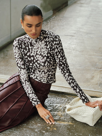 Crystal-Embellished Cut-Out Turtleneck Sweater