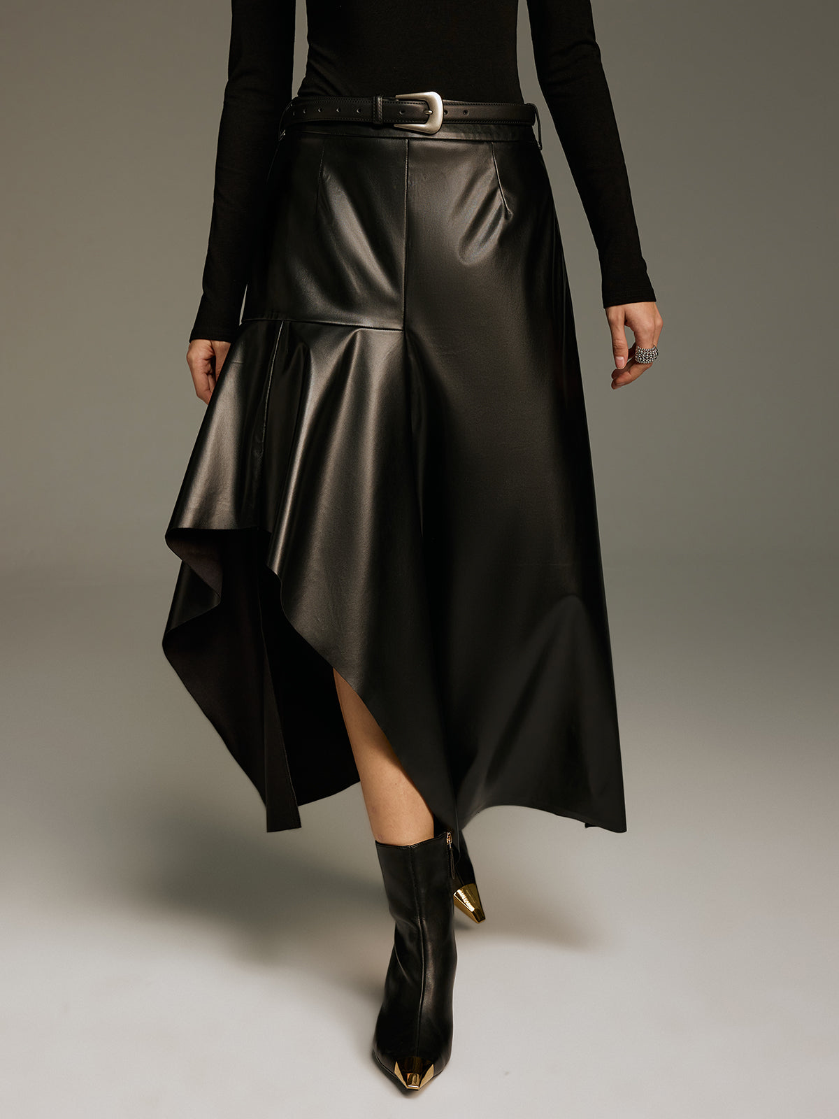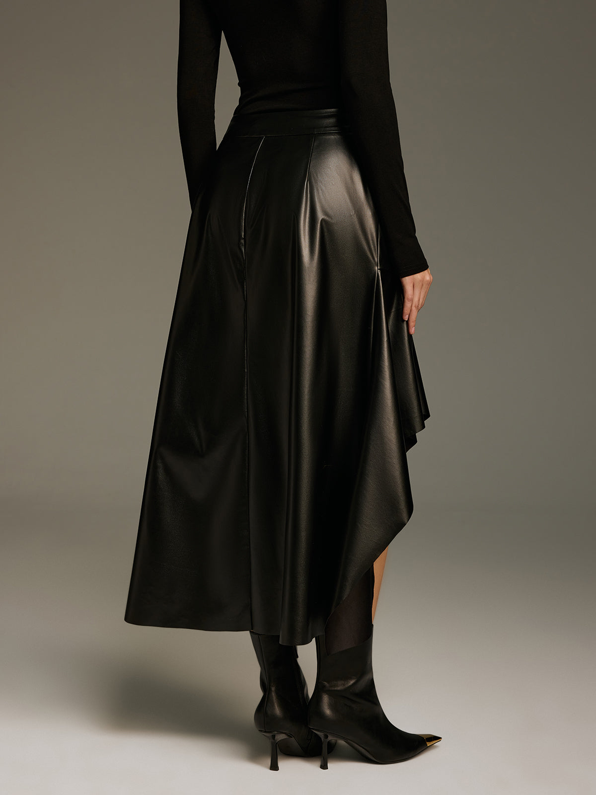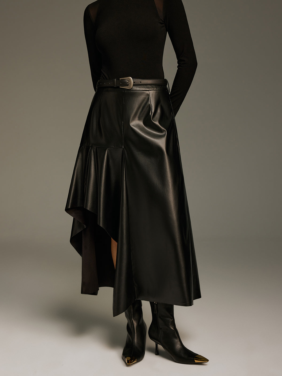basic - fabric,black,bottoms,casual,clothing,coll:bottoms,coll:old_money,coll:skirts,coll:vintage_fabrics,date,fall,faux leather,high stretch,in_six_month,invisible zipper,maxi,mid waist,minegence,no,non belted,not_low_sales,oa251018040,photo_model,regular,regular fit,skirts,winter,women