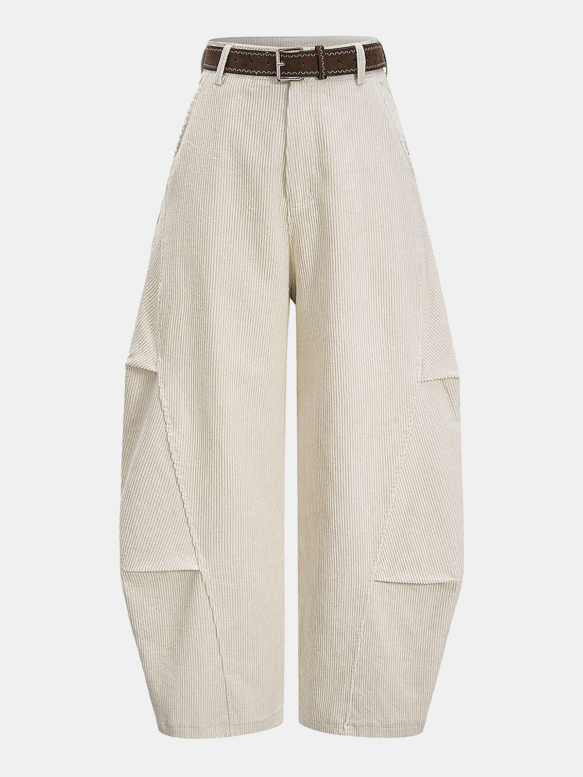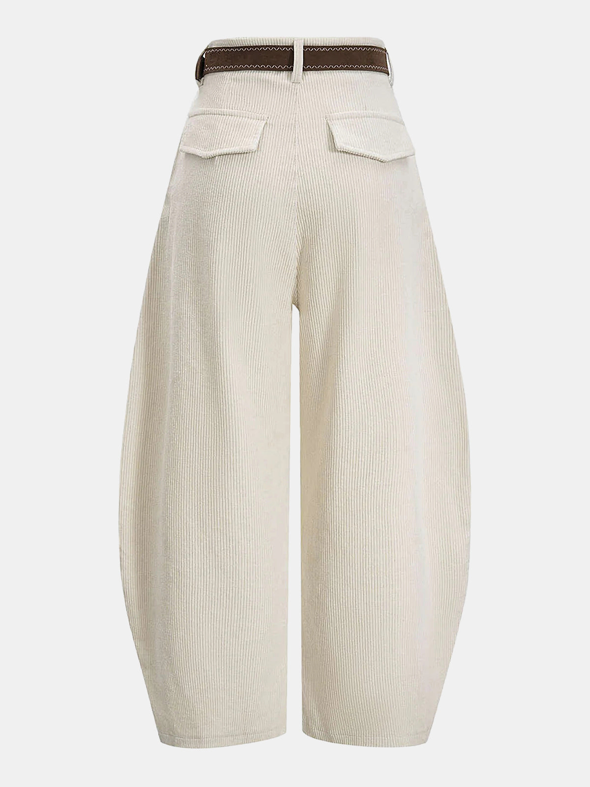Belted Corduroy Curved Wide-Leg Pants