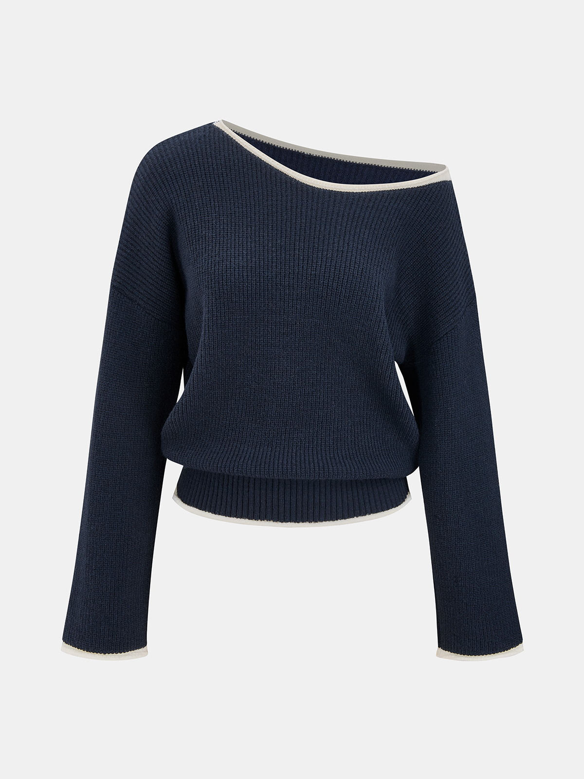 Contrast Trim Ribbed Off-Shoulder Sweater