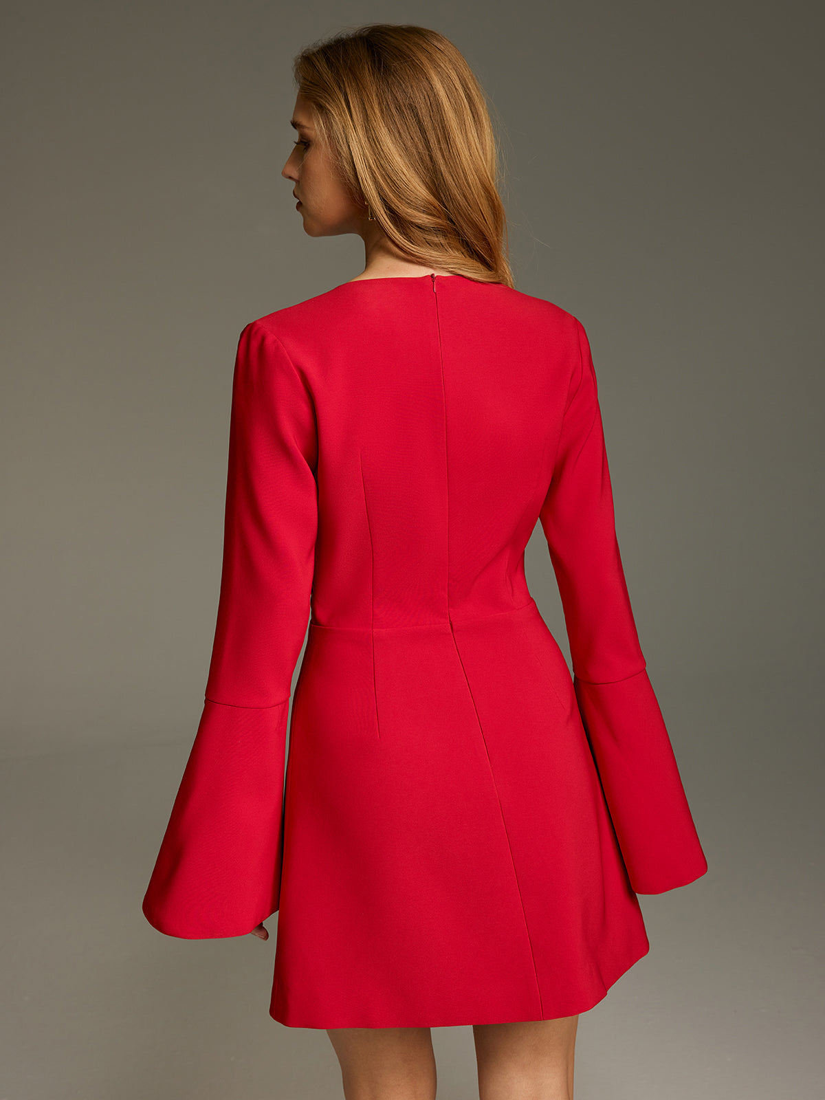 clothing,coll:dresses,coll:night_glam,date,dresses,fall,feminine,in_six_month,invisible zipper,long sleeve,no,not_low_sales,oa251028018,party,photo_model,red,regular,regular fit,short,slight stretch,spring,v-neck,winter,winter hues,women,woven fabric