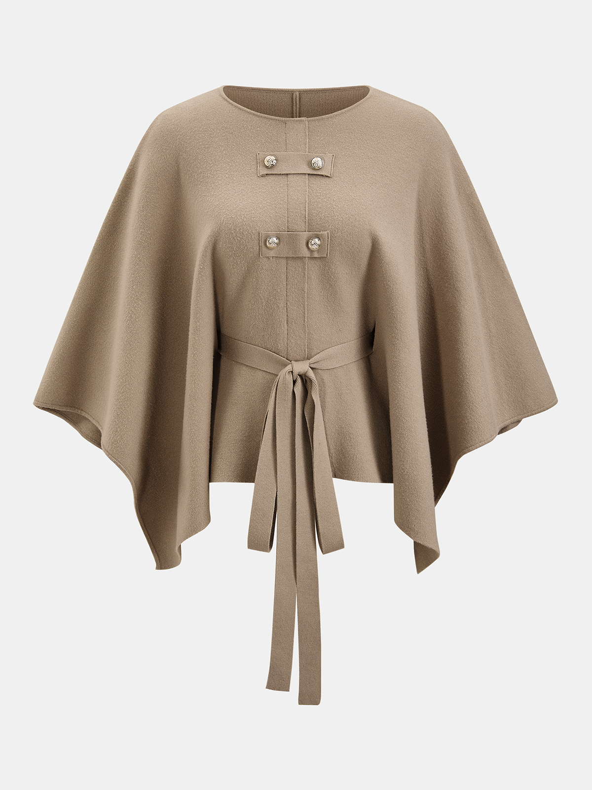Metal Button Belted Cape-Style Knit Top