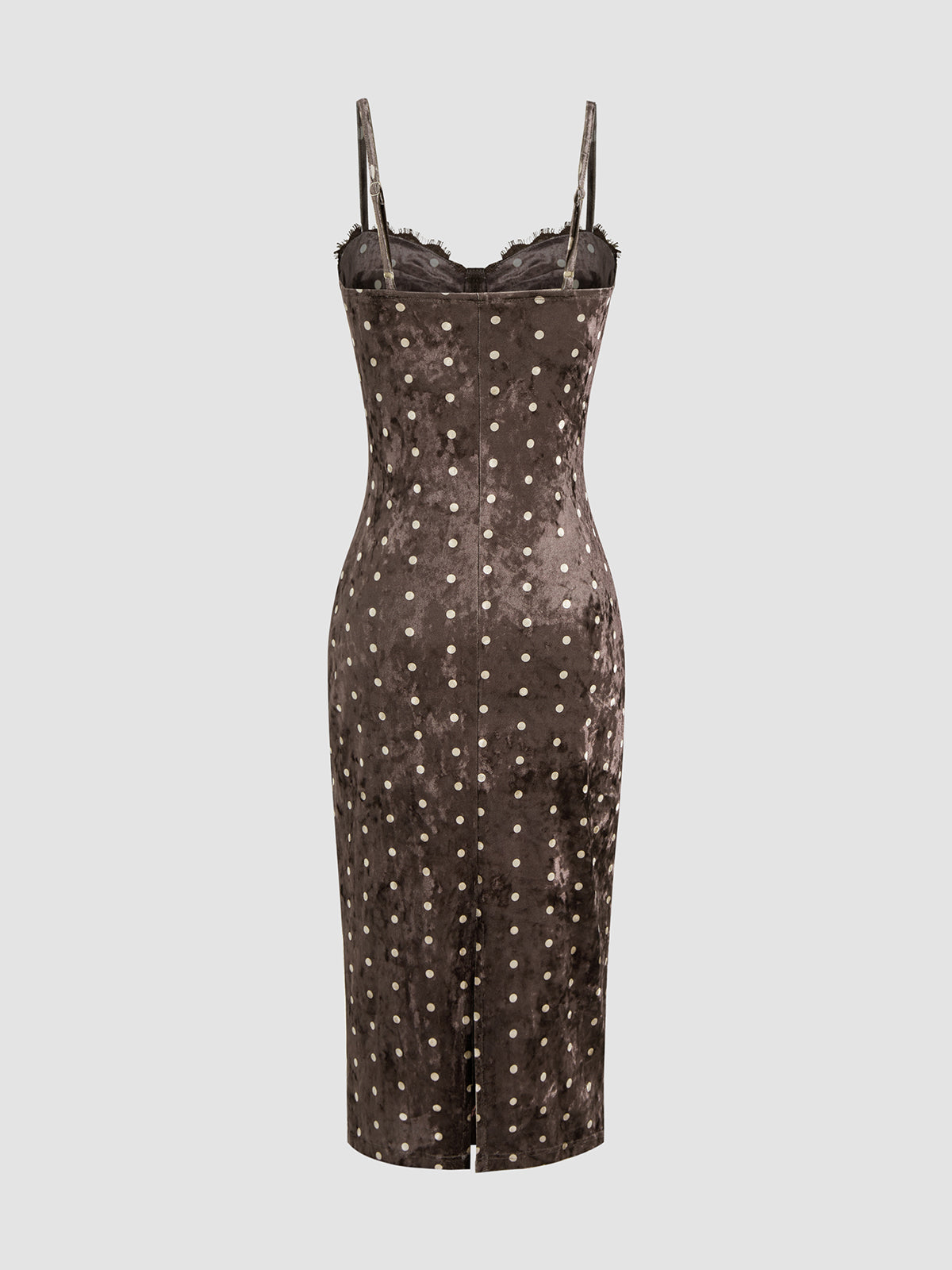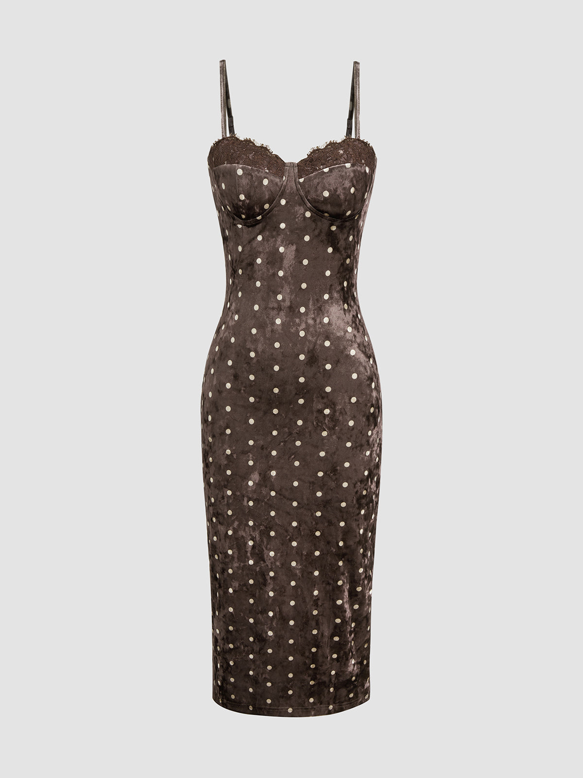 brown,clothing,coll:dresses,coll:night_glam,coll:vintage_fabrics,collarless,date,dresses,in_six_month,lace,medium stretch,midi,minegence,no,not_low_sales,oa251112010,party,polka dot,regular,regular fit,sleeveless,velvet,winter hues,women
