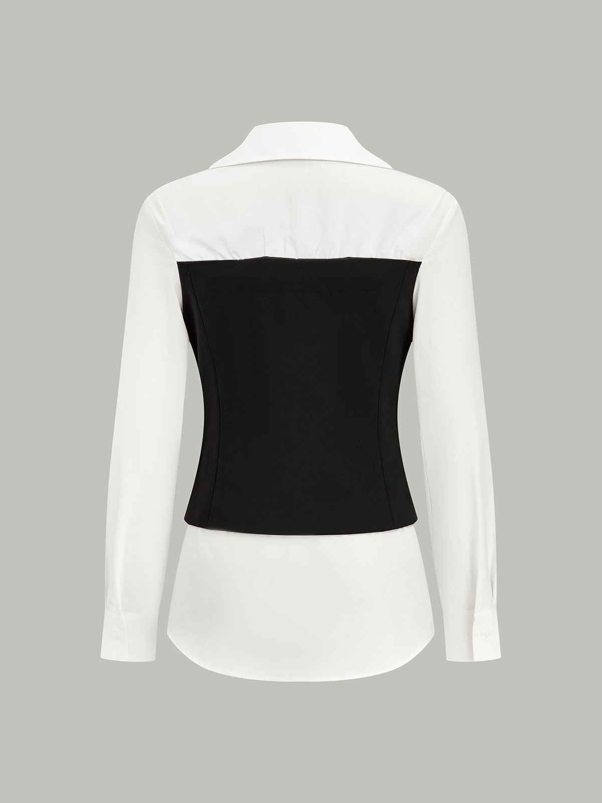 blackandwhite,cici select,clothing,coll:blouses_shirts,coll:tops,collar,color block,corpcore,daily,elegant,fall,in_six_month,inner sample,long sleeve,long top,metal detail,no,not_low_sales,oa250702053,regular,regular fit,romantic/vintage,serena-选品,shirts,slight stretch,spring,tops,winter,women,woven fabric