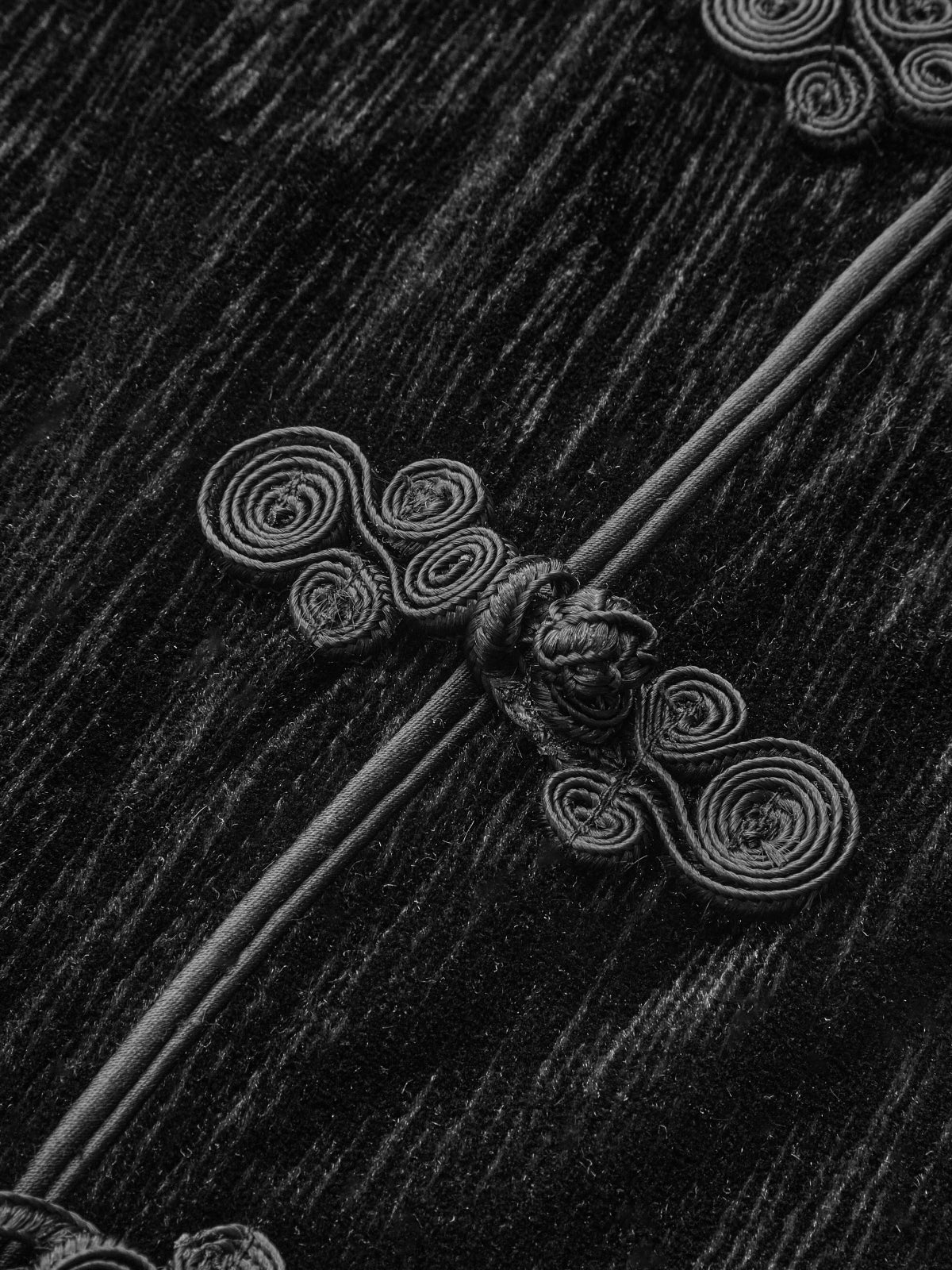 Mandarin Collar Velvet Frog-Closure Slit Dress