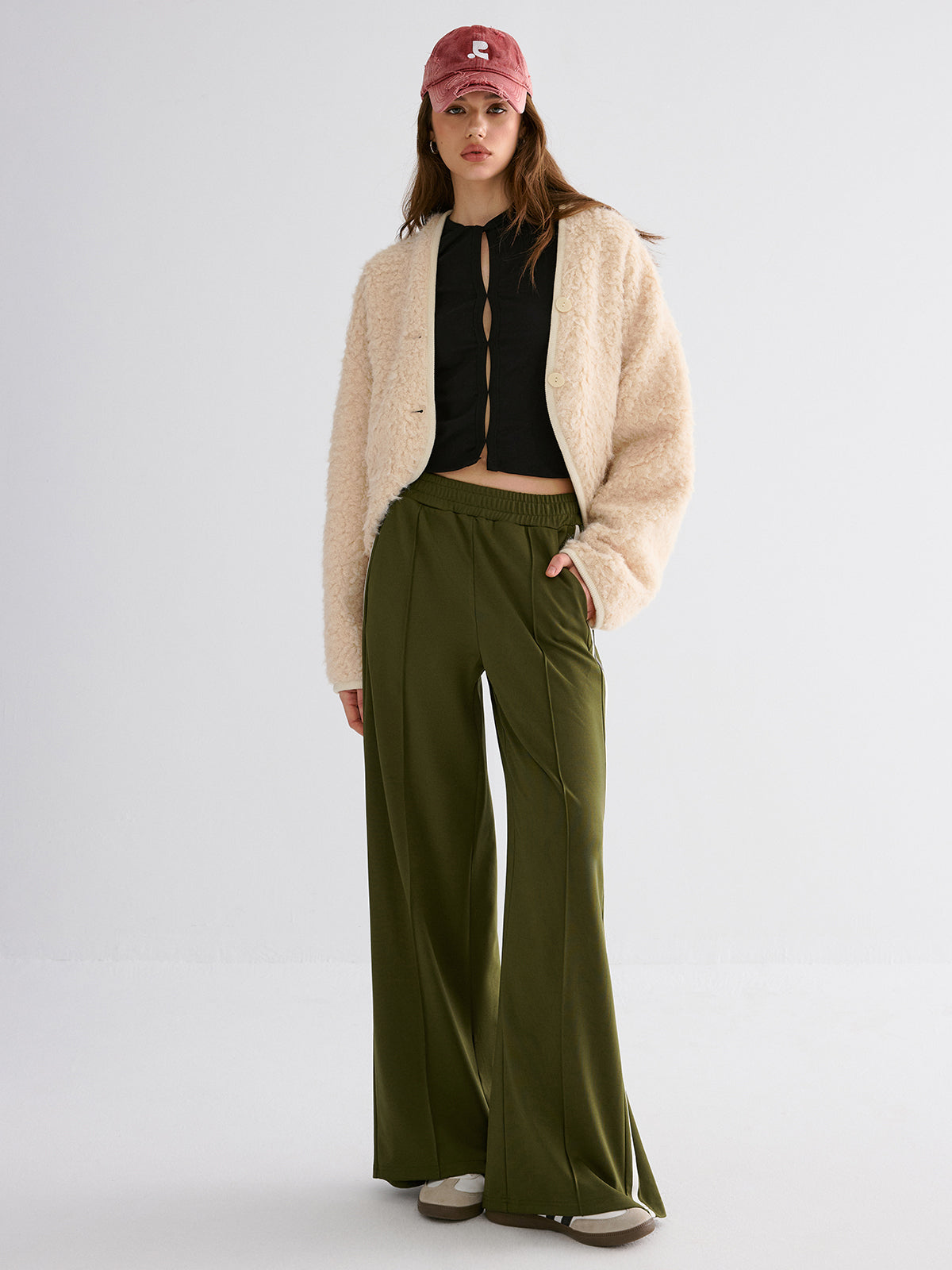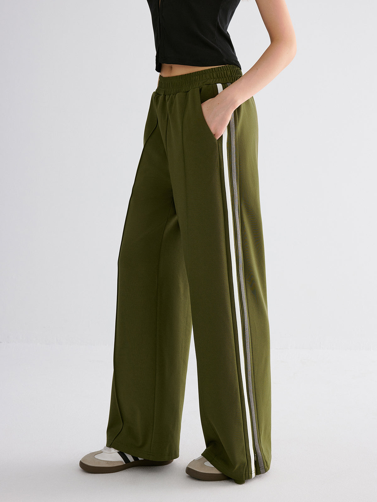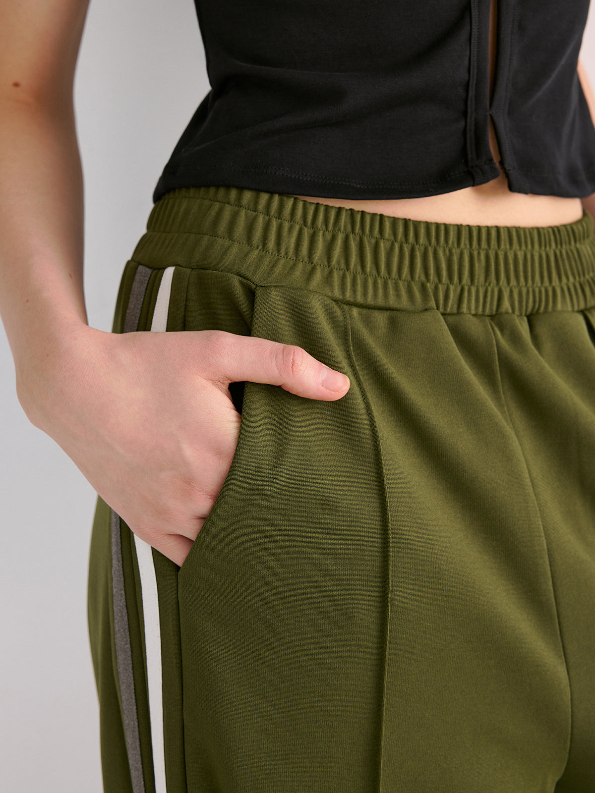 armygreen,bottoms,casual,clothing,coll:bottoms,coll:pants,coll:trending,contrast piping / trim,corpcore,fall,in_six_month,inner sample,invisible zipper,long pants,mid waist,minegence,no,not_low_sales,oa250814015,pants,photo_model,regular,shift,slight stretch,spring,sweatshirt fabric,winter,women