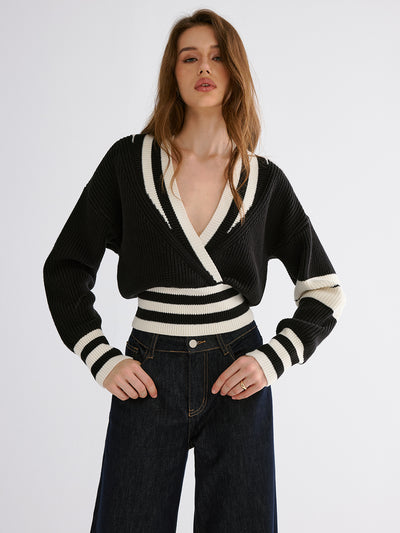 Contrast Ribbed Paneled Long Sleeve Shirt
