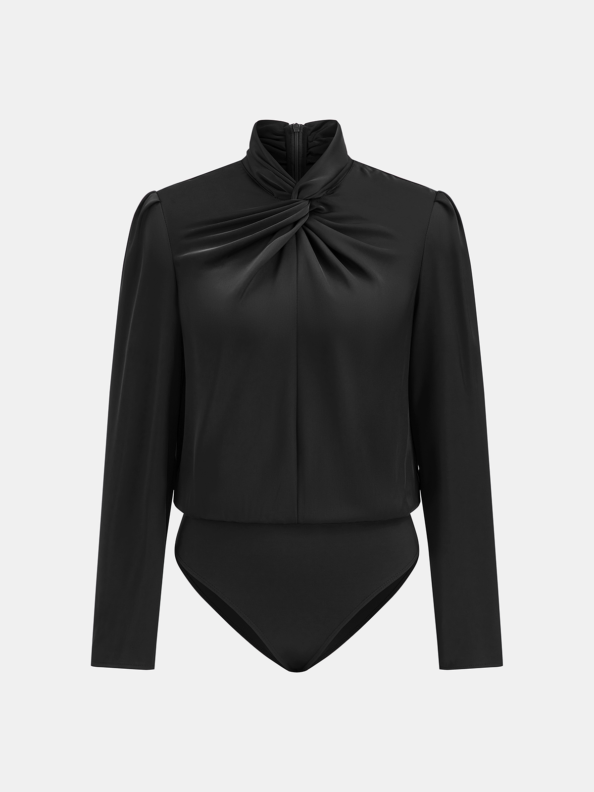 Twisted Mock Neck Long-Sleeve Satin Bodysuit