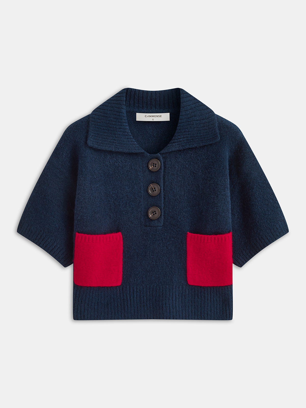 Contrast Pocket Polo-Collar Short-Sleeve Sweater