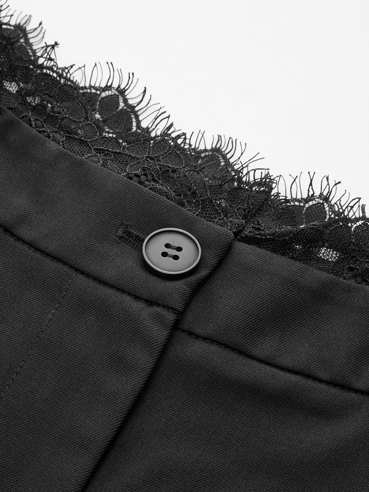 black,bottoms,casual,clothing,coll:bottoms,coll:pants,coll:trending,corpcore,fall,in_six_month,inner sample,lace,long pants,mid waist,minegence,no,non-stretch,not_low_sales,oa250919007,pants,regular,regular fit,spring,winter,women,woven fabric