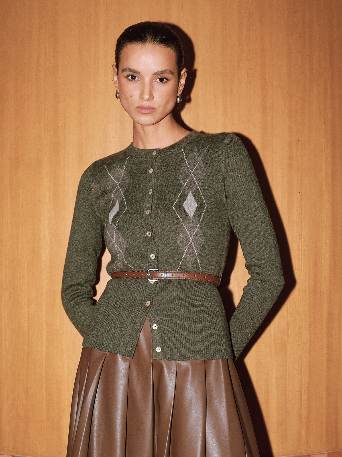 Argyle Wool-Blend Knit Cardigan