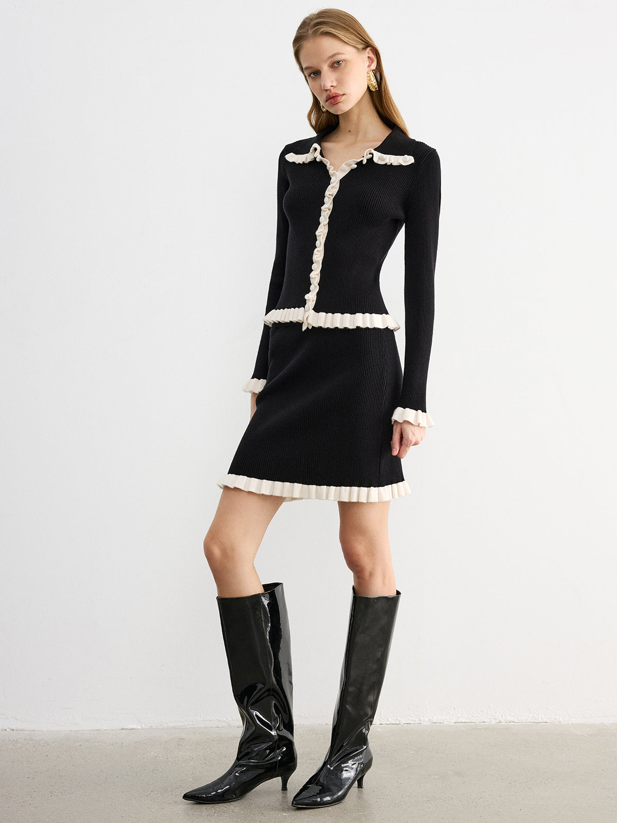 Contrast Ruffled Knit Top and Mini Skirt Set