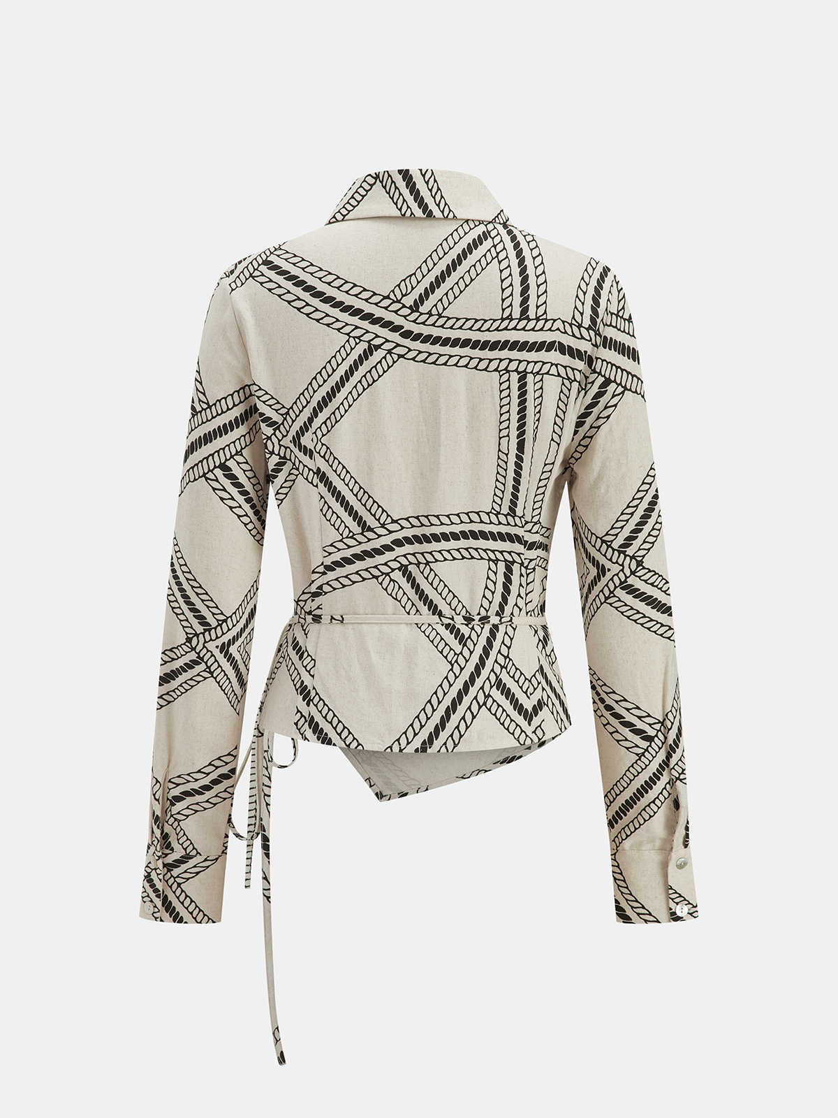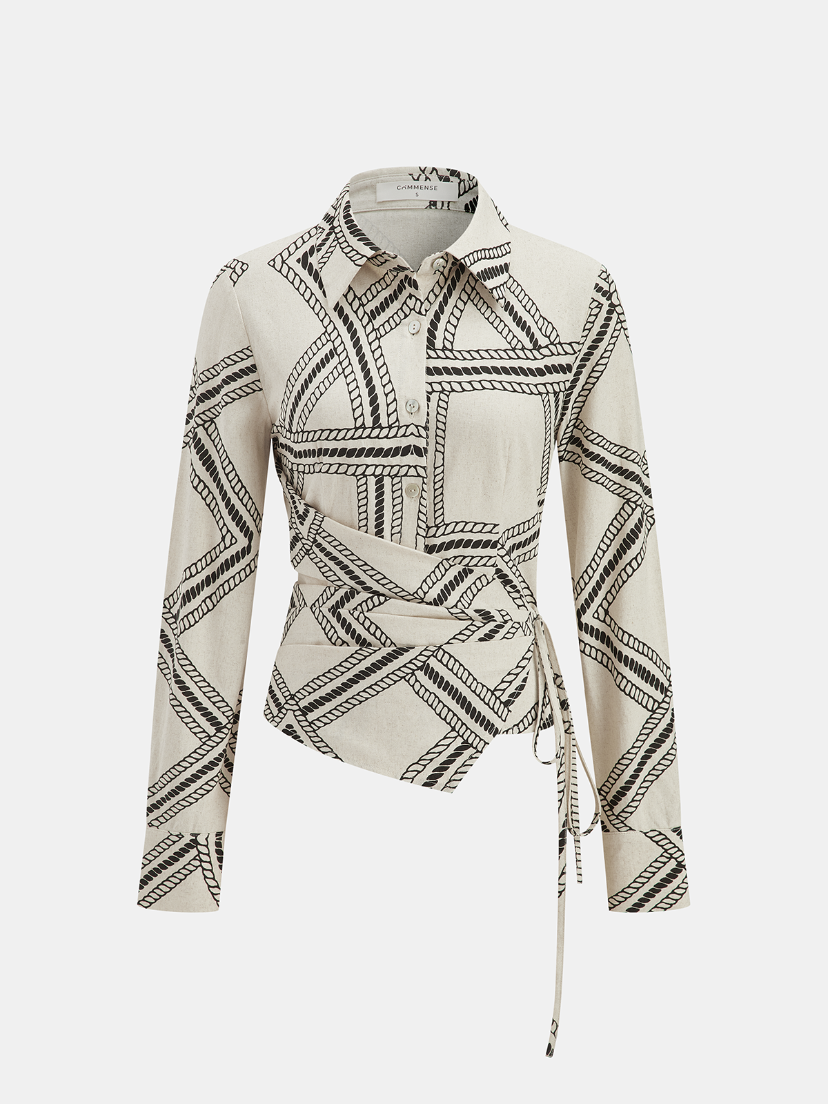 Abstract-Print Wrap-Tie Long-Sleeve Shirt