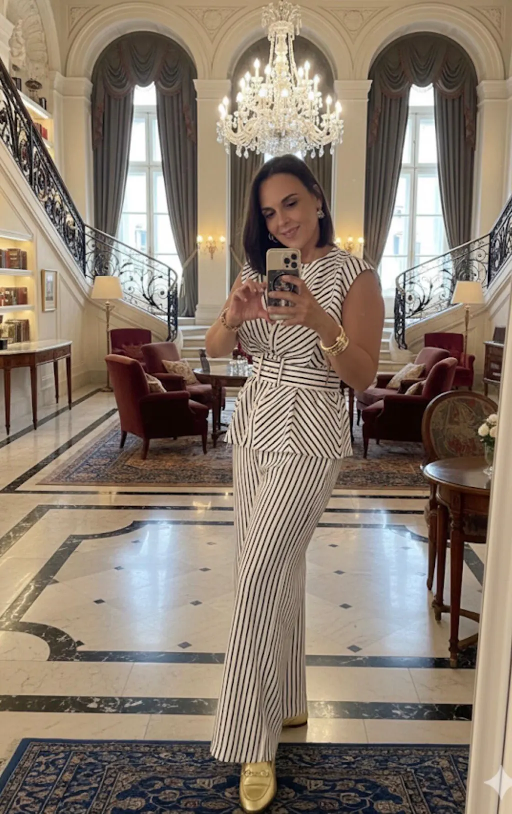 I wore this top and pants duo to my trip to the south of Spain and it didn’t disappoint. It was very comfortable & fashionable, and easy to iron. I have trouble with a lot of tops because while I am tall, I have a shorter torso, but this fit me perfectly. My boobs weren’t popping the buttons out and my bra wasn’t showing.