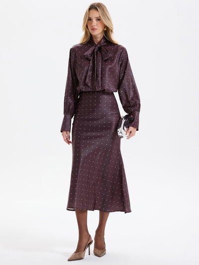 Polka Dot Bow-Tie Blouse and Midi Skirt set