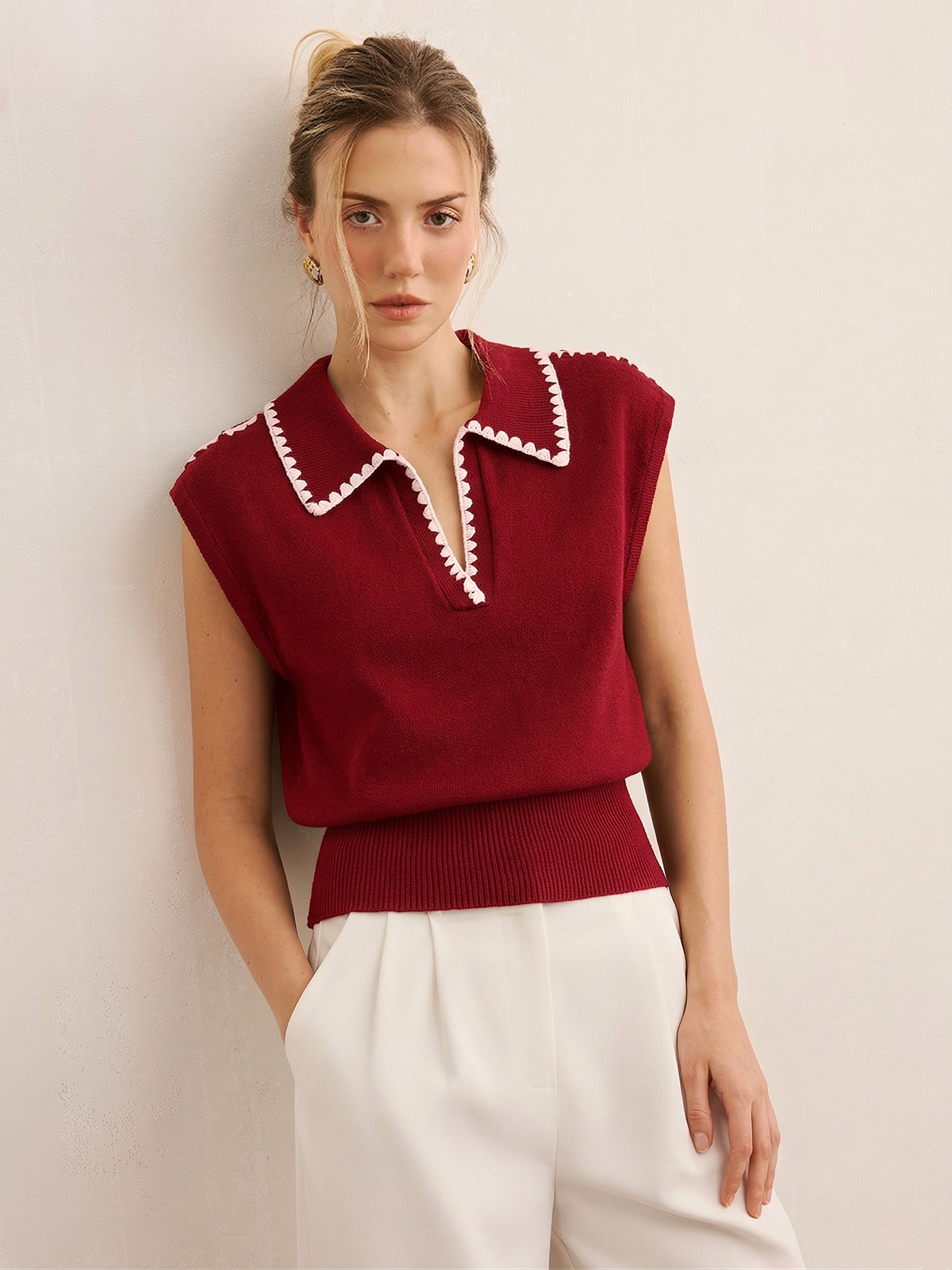 black,bloused waist,casual,cathryn-d,clothing,coll:knitwear,coll:sweaters_cardigans,coll:tops,coll:trending,coll:vacation,coll:vests,coll:weekend_getaway,contrast piping / trim,cyy,high stretch,hm selected,in_six_month,knit,knitwear,lightblue,minegence,modern minimal,not_low_sales,oa251016025,off-shore collective,photo_model,red,regular,regular fit,sweater vests,vacation,women,yellow