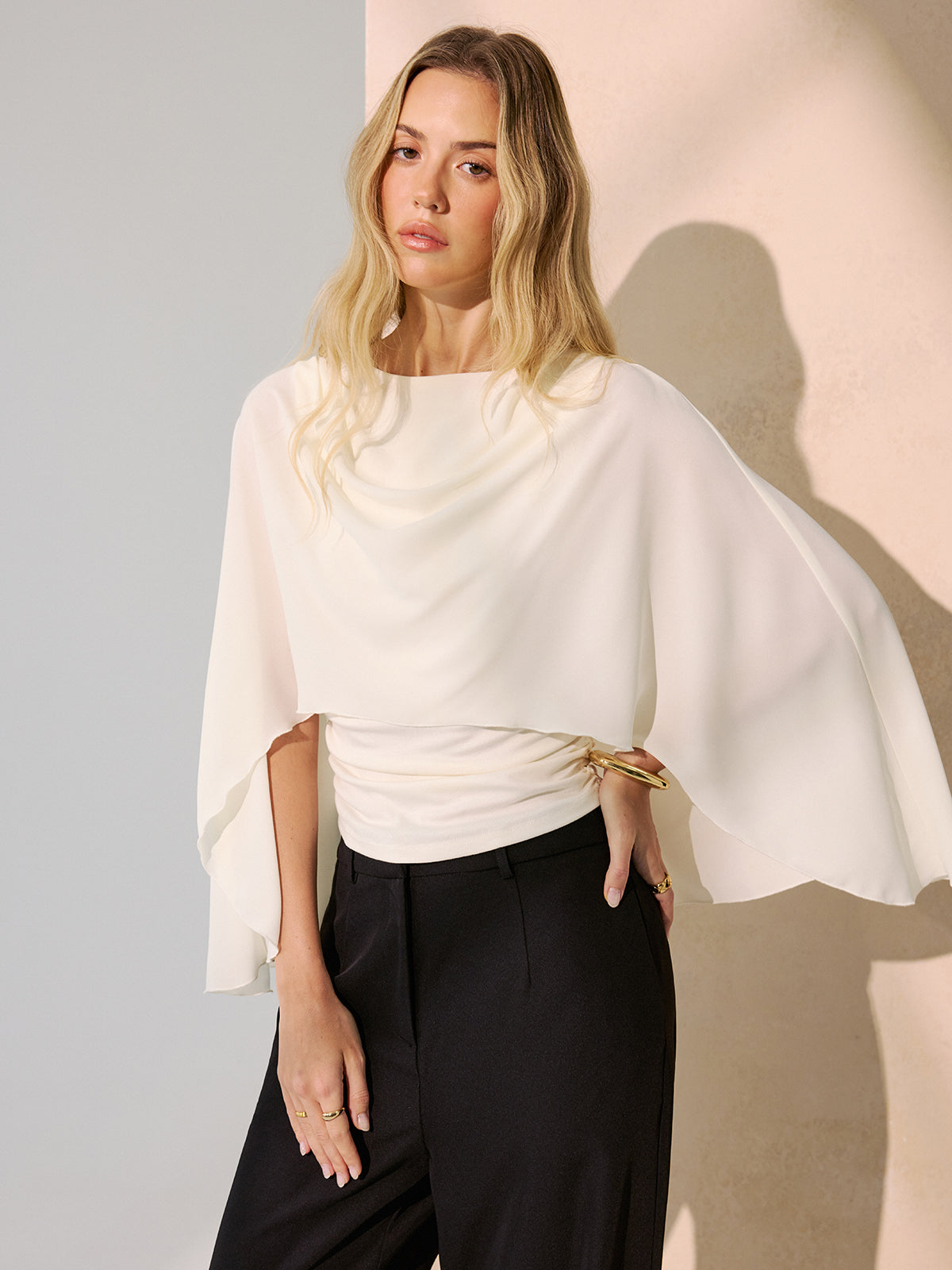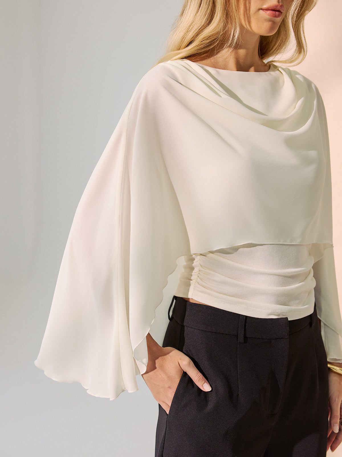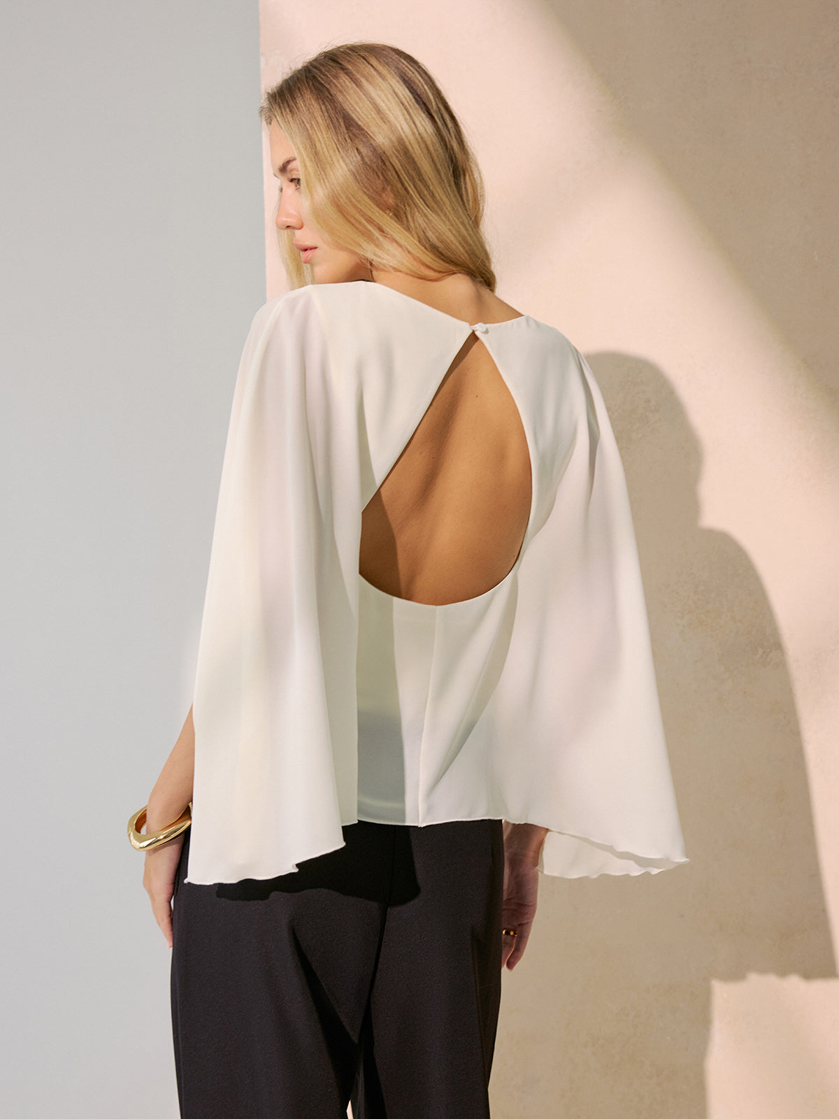 Backless Draped Cape-Sleeve Blouse