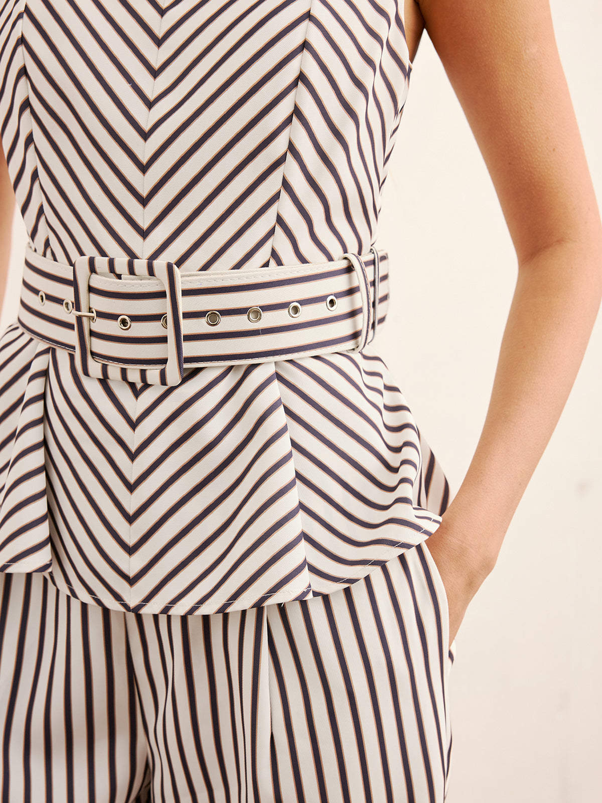 belted,blackandwhite,casual,clothing,coll:bottoms,coll:matching_sets,corpcore,elastic waistband,in_six_month,minegence,modern minimal,no,not_low_sales,oa251128069,pant sets,peplum,photo_model,regular,regular fit,sets,slight stretch,stripe,women,woven fabric