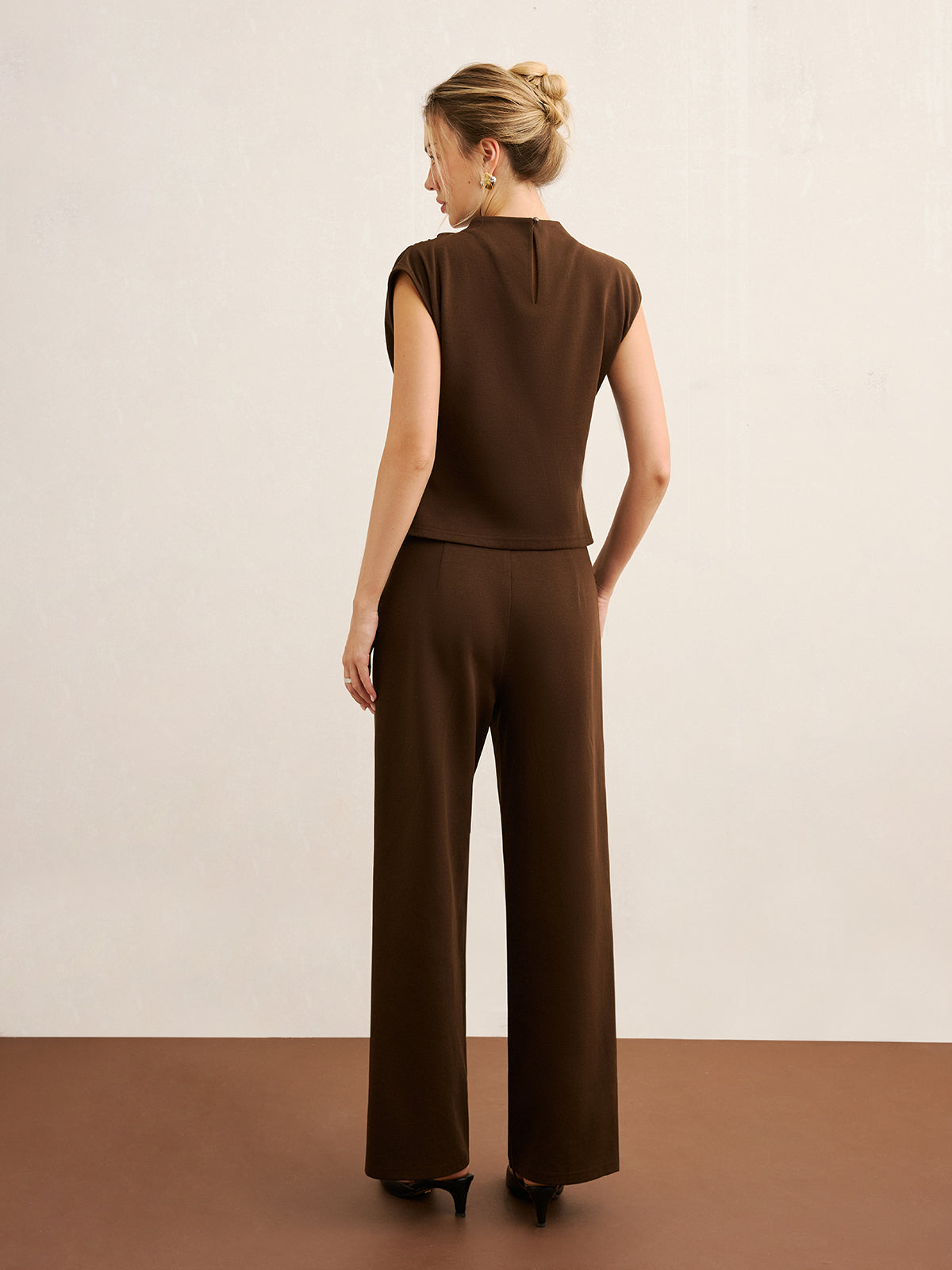 Twist Front Sleeveless Top & Wide-Leg Pants Set