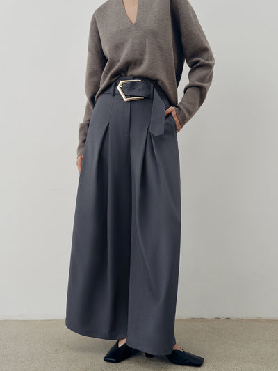 Mid-Waist Pleated Wide-Leg Pants