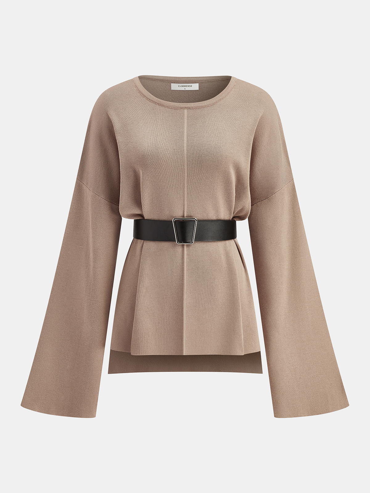 Belted Flare-Sleeve Knit Two-Piece Set