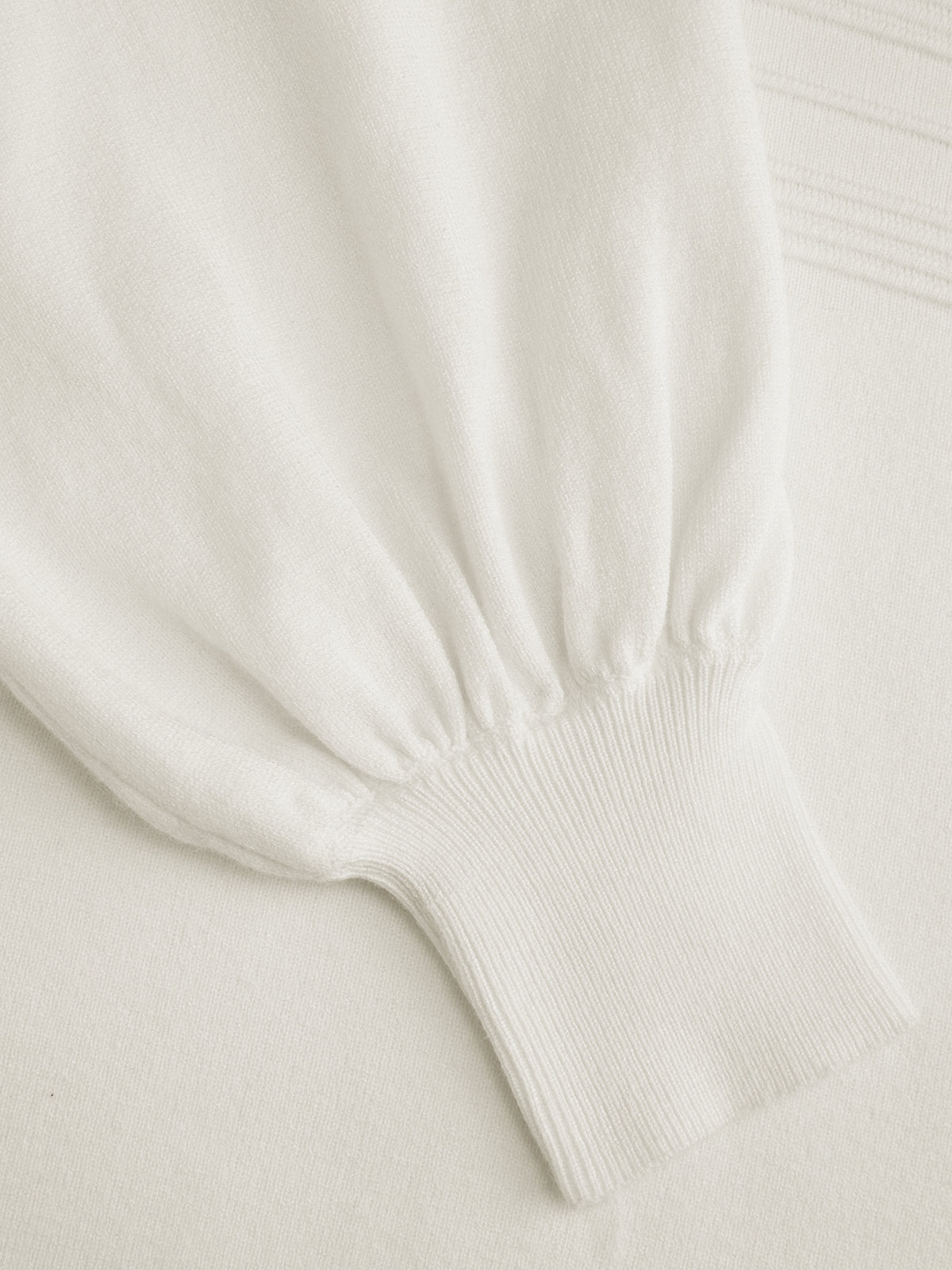 Waist-Defined Balloon-Sleeve Knit Midi Dress