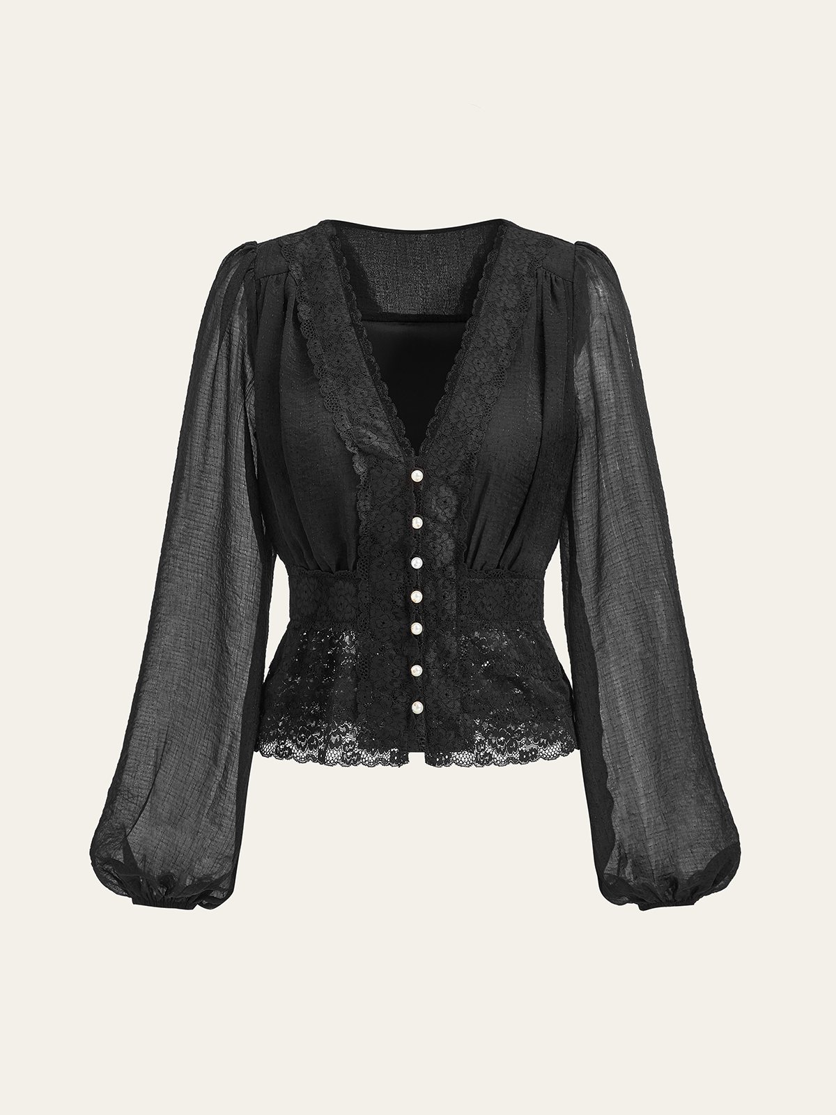 black,blouses,chiffon,clothing,coll:blouses_shirts,coll:sheer_bare-back,coll:tops,daily,date,date-2025,fall,in_six_month,inner sample,lace,lace or contrast lace,long sleeve,low_sales,non-stretch,oa250528032,pearl,photo_ai,regular,regular fit,romantic/vintage,semi-sheer,sheer,spring,tops,v-neck,women