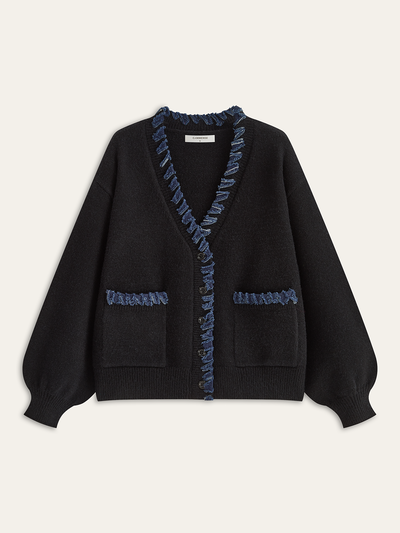 Button Placket Ribbed Knit Fitted V-Neck Top